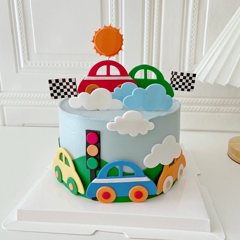 에바 만화 자동차 케이크 장식 플러그인 스폰지 폼 플립 설탕 신호등 디저트 데스크 원피스 업 카드