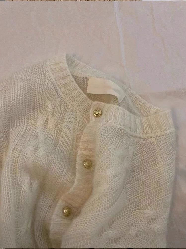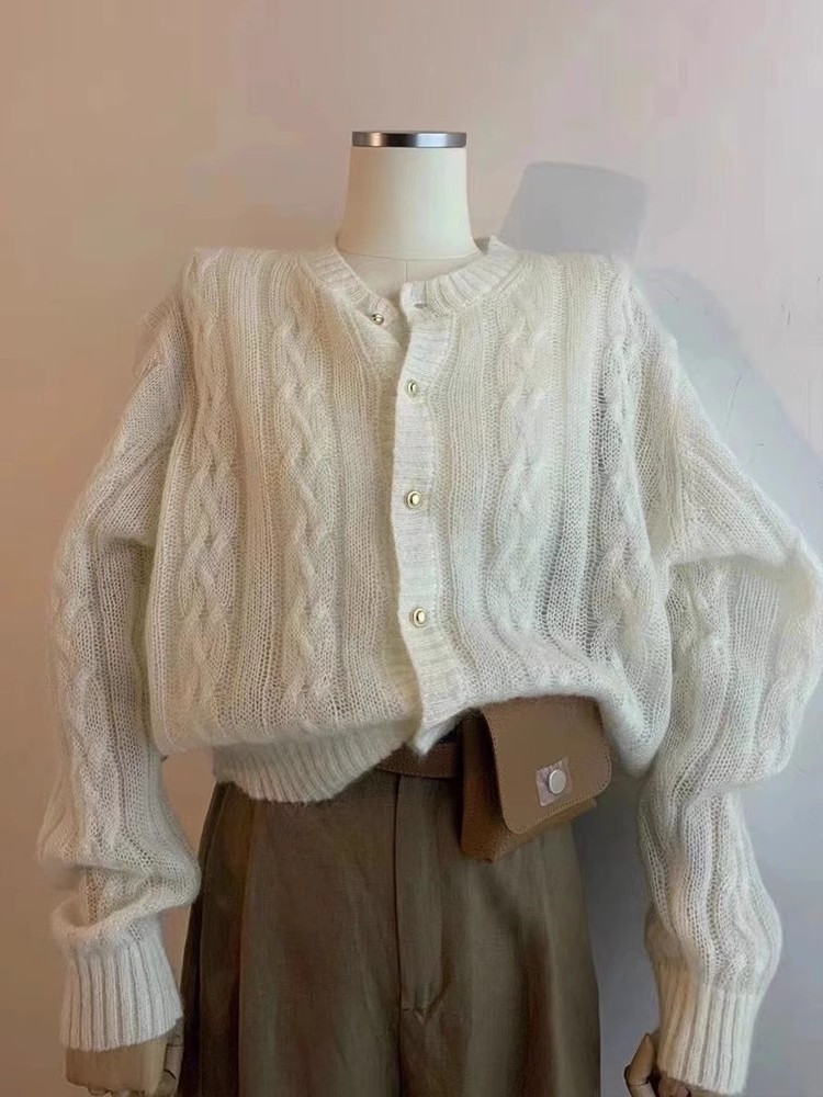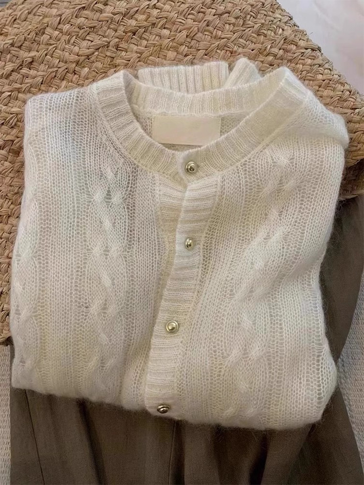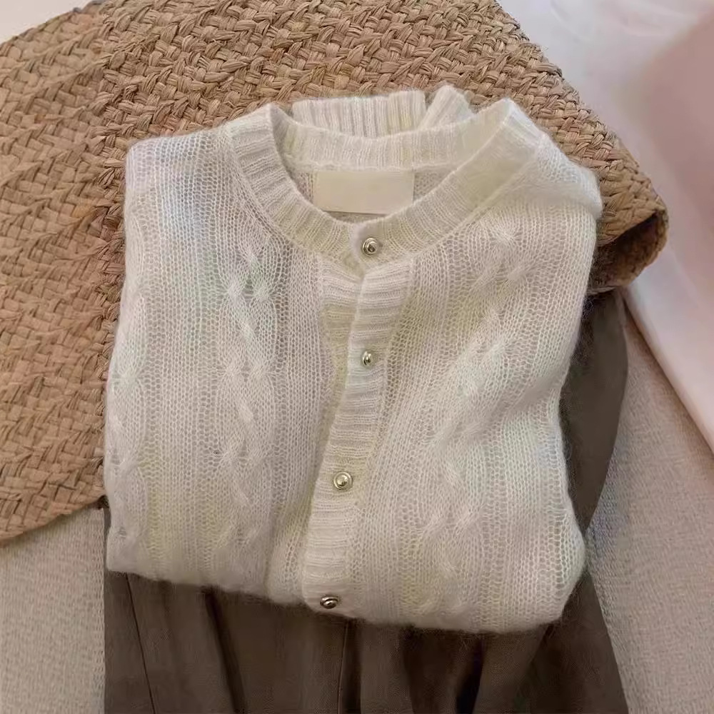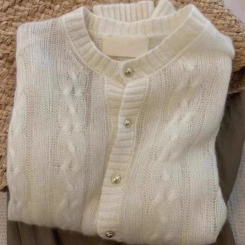 여성을위한 부드럽고 밀랍 모헤어 니트 카디건 2025 가을 새로운 스타일 작은 골드 버튼 기질 트위스트 스웨터 재킷