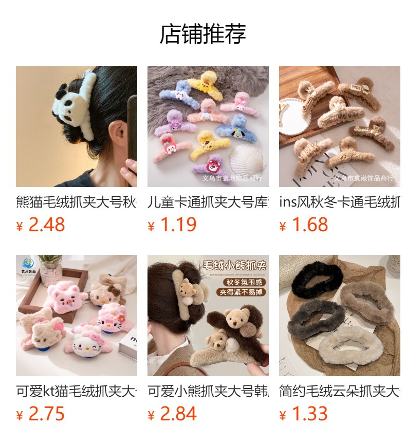 어린이 귀여운 클램프 큰 산리오 가을과 겨울 머리 머리 머리 상어 클립 만화 봉제 머리핀 머리스토어 가기