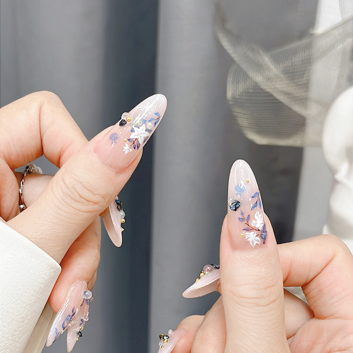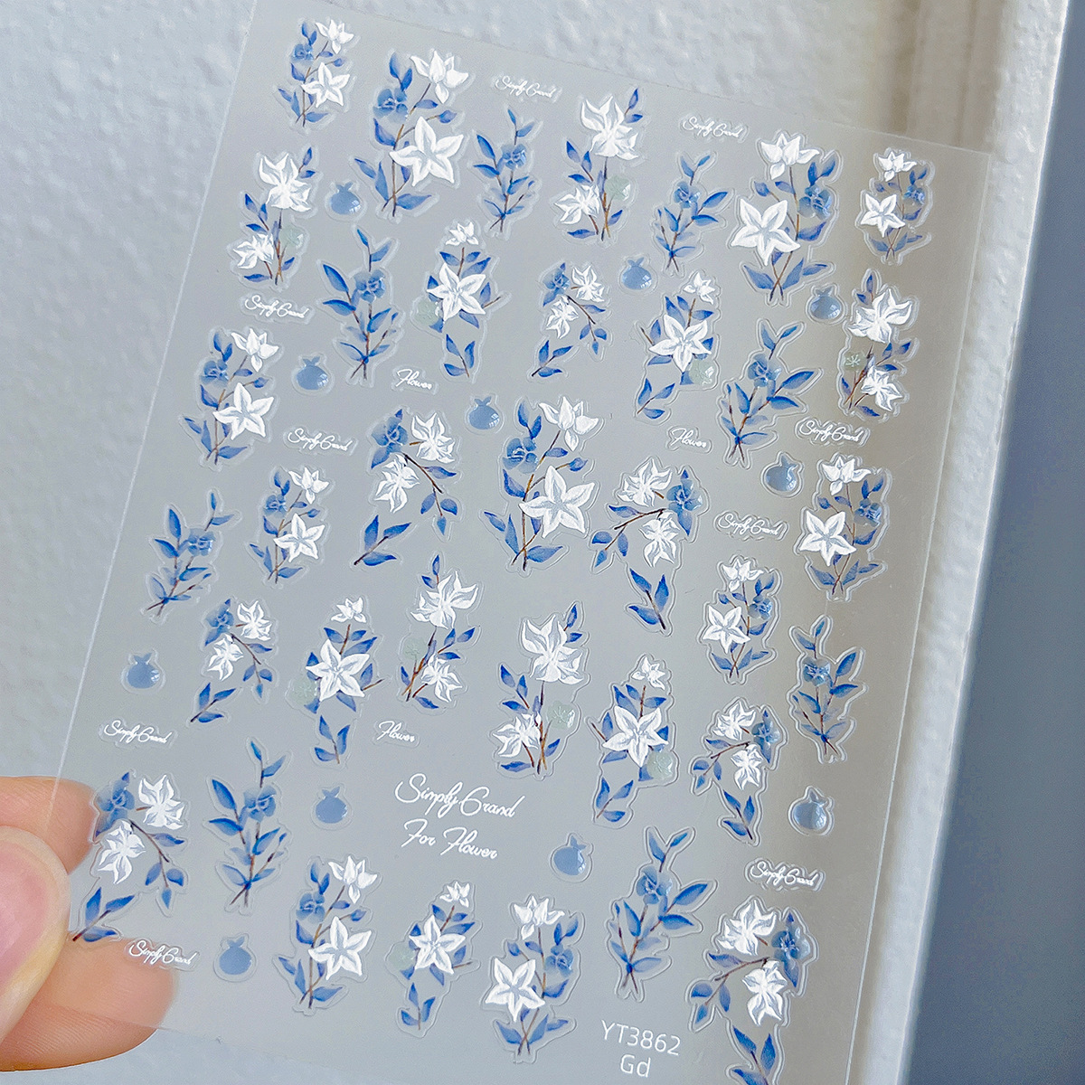 개미 그림 YITU 젤리 릴리 네일 아트 스티커 블루 5 꽃잎 꽃 스테레오 접착 네일 스티커 YT3862