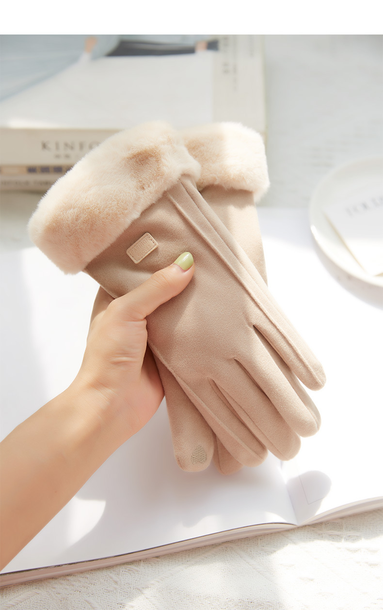 스웨이드 장갑 여성용 기모 두꺼운 겨울 따뜻한 귀여운 울 장갑 여성용 승마 방탄 사이클링 방풍