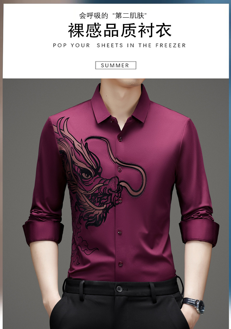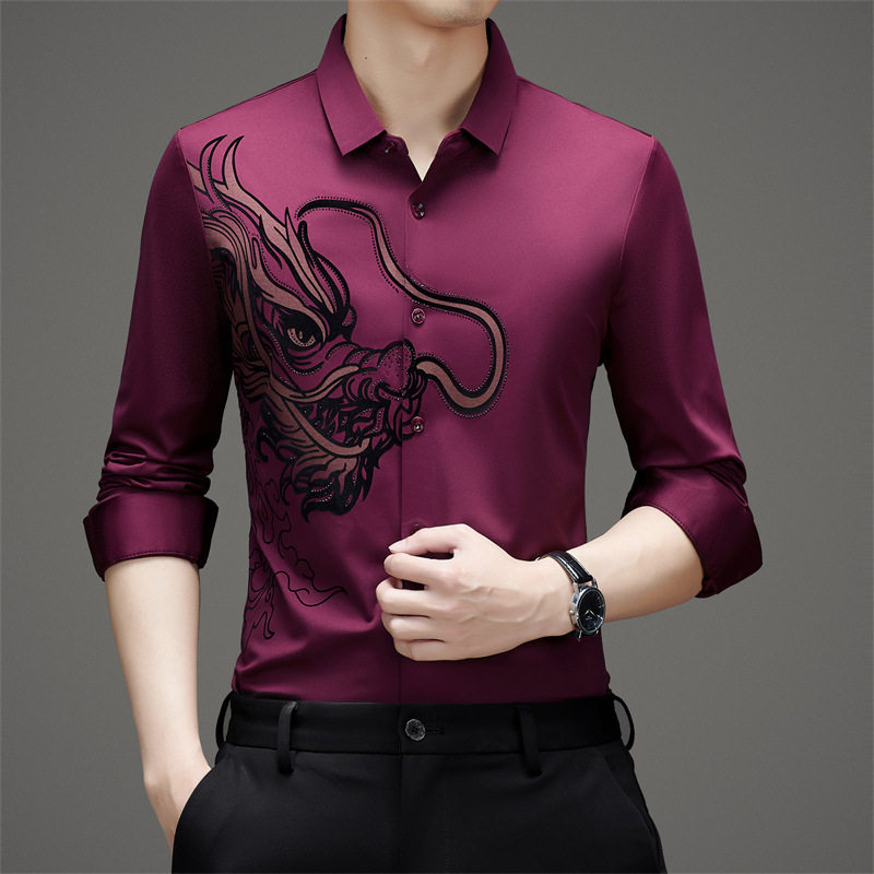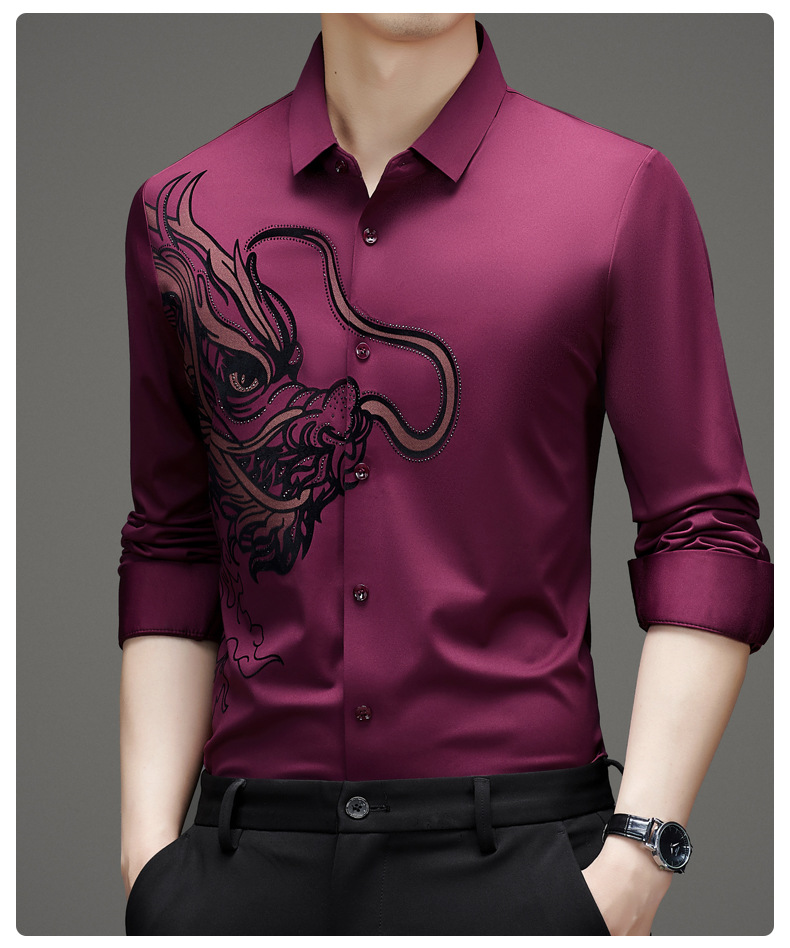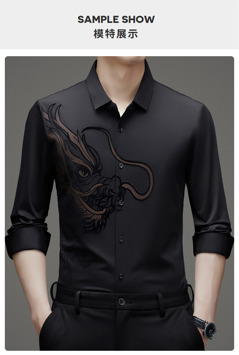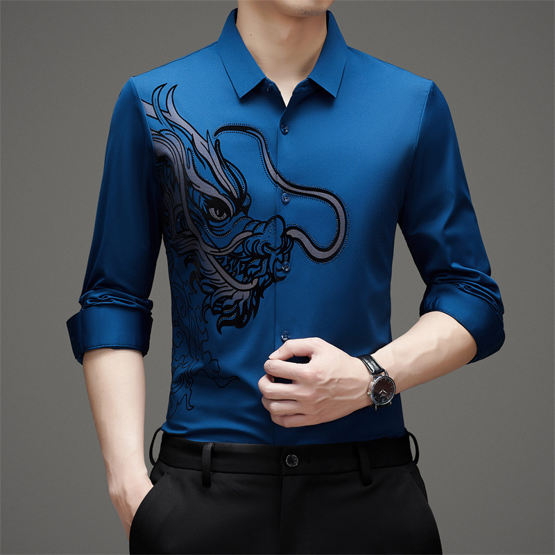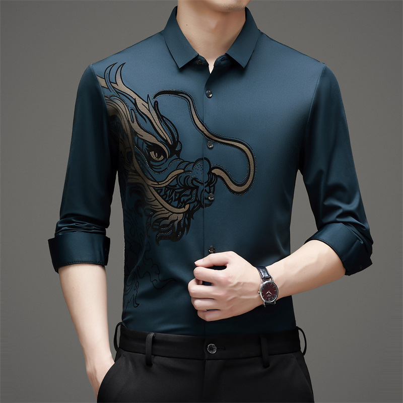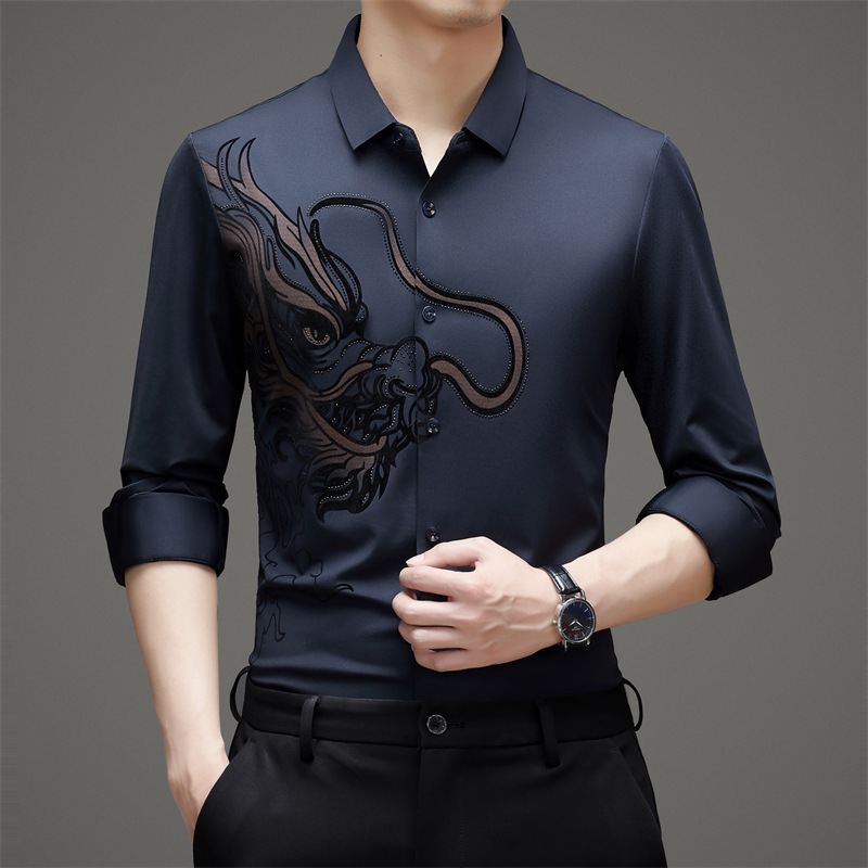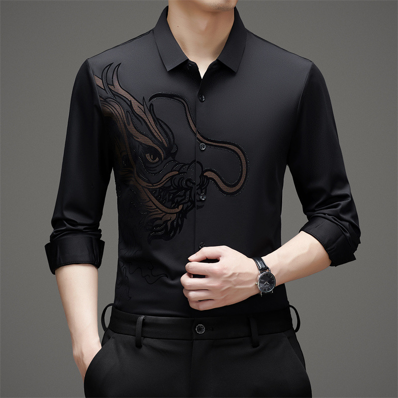 국경 간 대외 무역 용 핫 스탬핑 긴 소매 셔츠 남성 가을 새로운 캐주얼 원활한 비 다림질 느슨한 셔츠 남성 의류