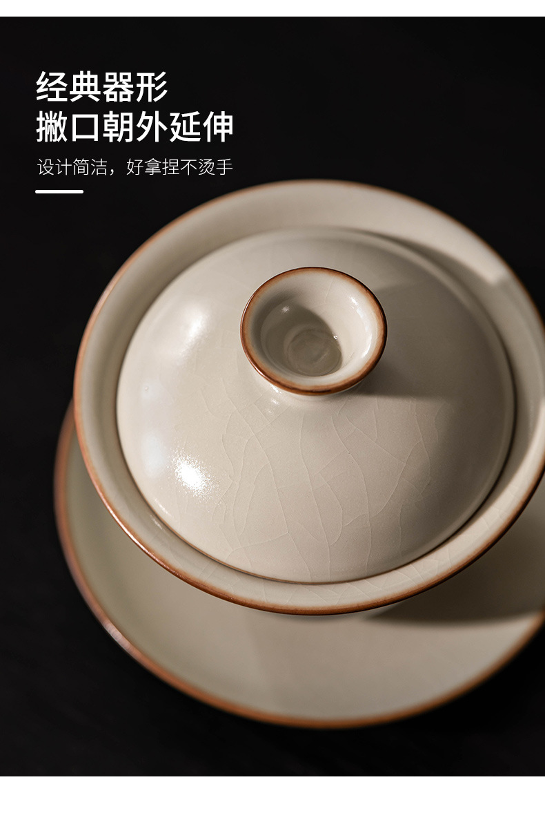 汝窑盖碗三才盖碗单个高档功夫茶具冰裂可养家用泡茶碗不烫手茶杯