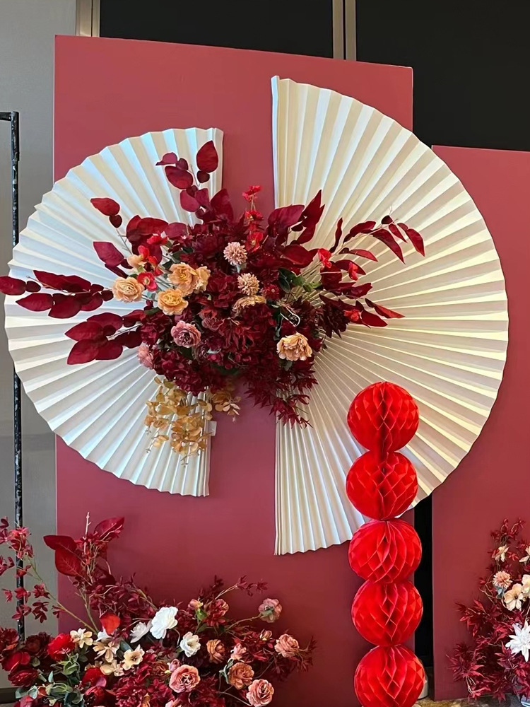 婚庆折纸扇订婚背景板布置活动拍照橱窗美陈装饰纸扇花半圆折扇子