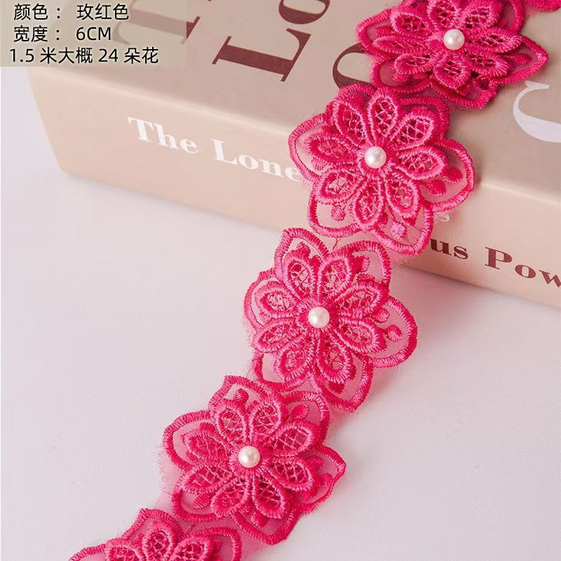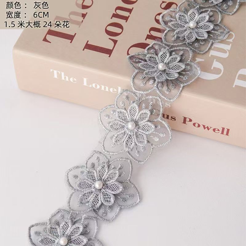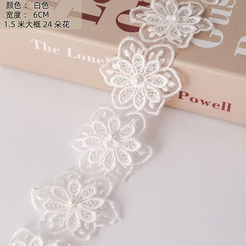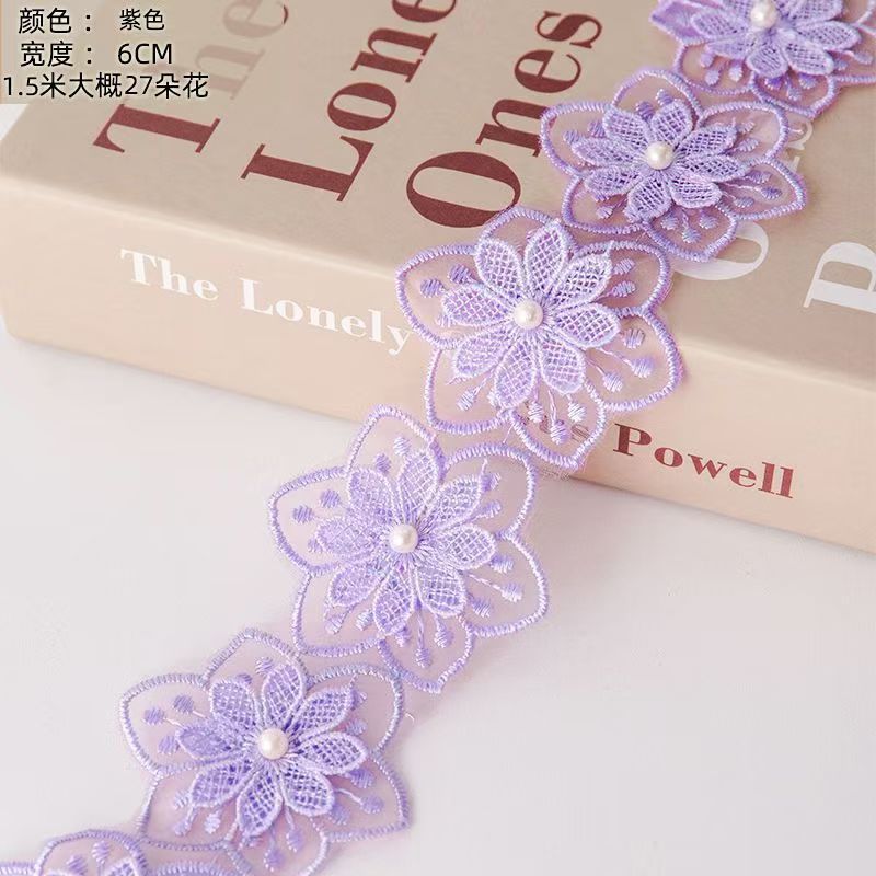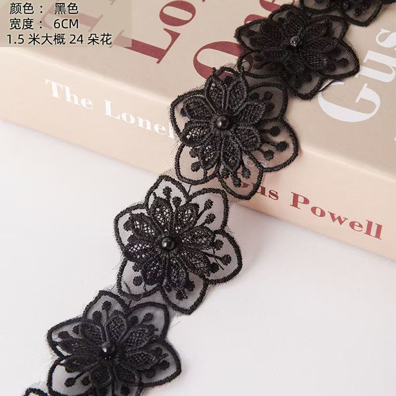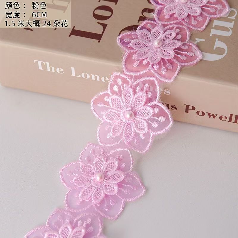 구슬 레이스 6 꽃잎 오간자 3 차원 더블 레이어 레이스 꽃 의류 액세서리 DIY 수제 옷 너비 6CM