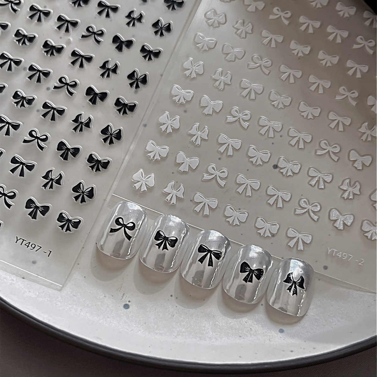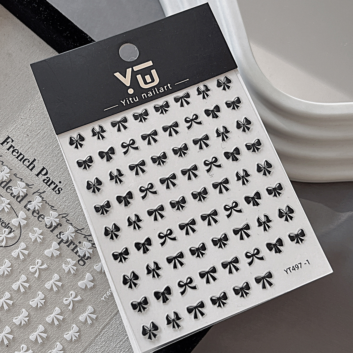 개미 그림 YITU 블랙 화이트 시리즈 스트랩 보우 네일 아트 스테레오 릴리프 네일 스티커 YT497스토어 가기