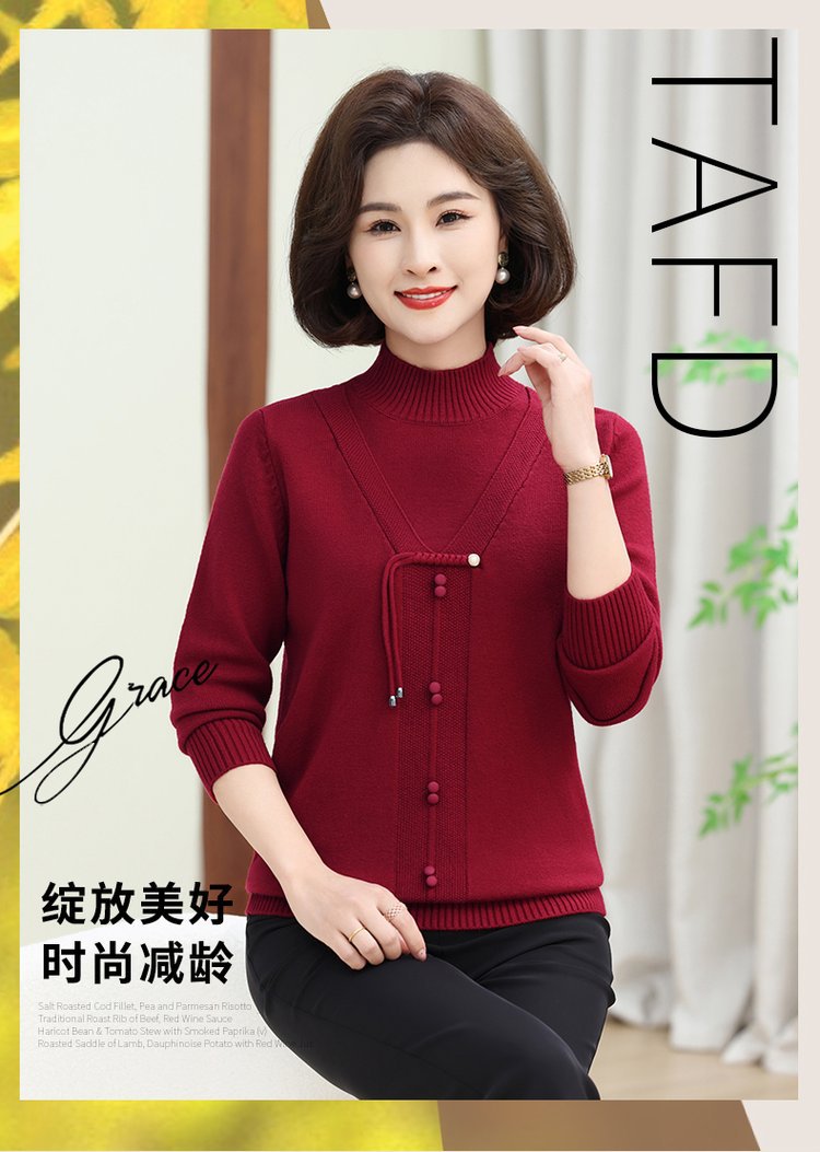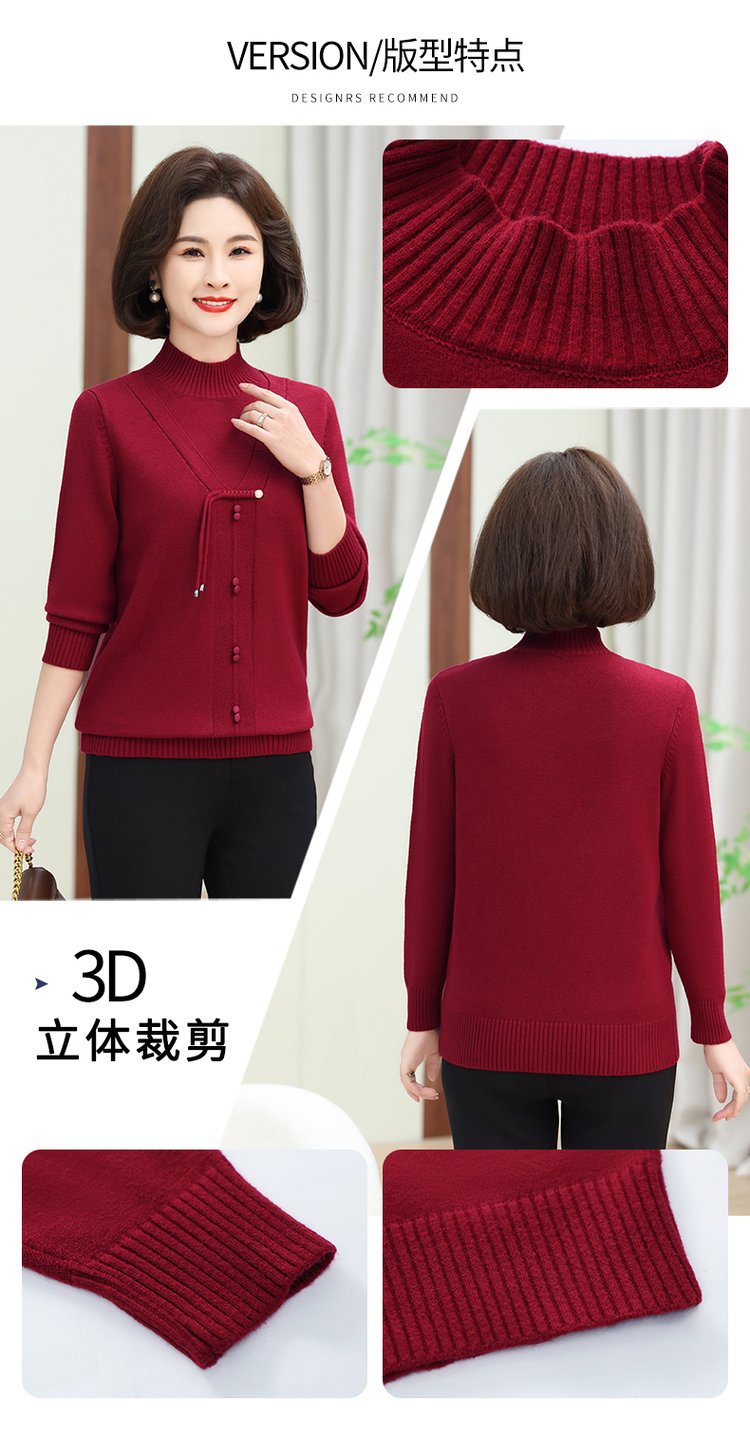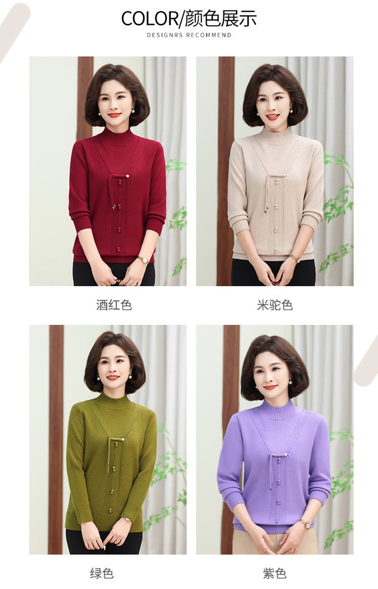 엄마를위한 새로운 중국 니트웨어 중년 여성의 새로운 서양식 슬리밍 올매치 베이스 스웨터스토어 가기