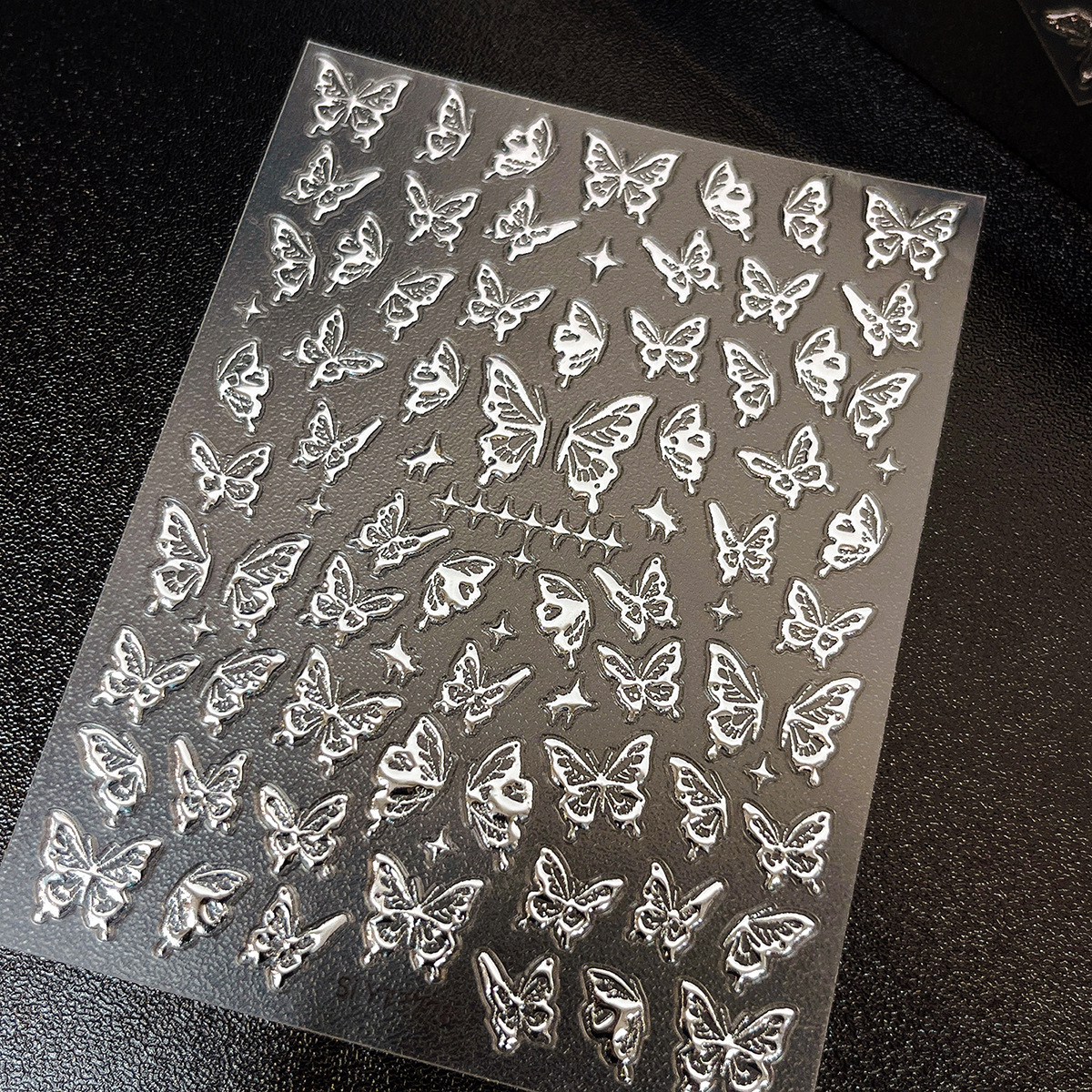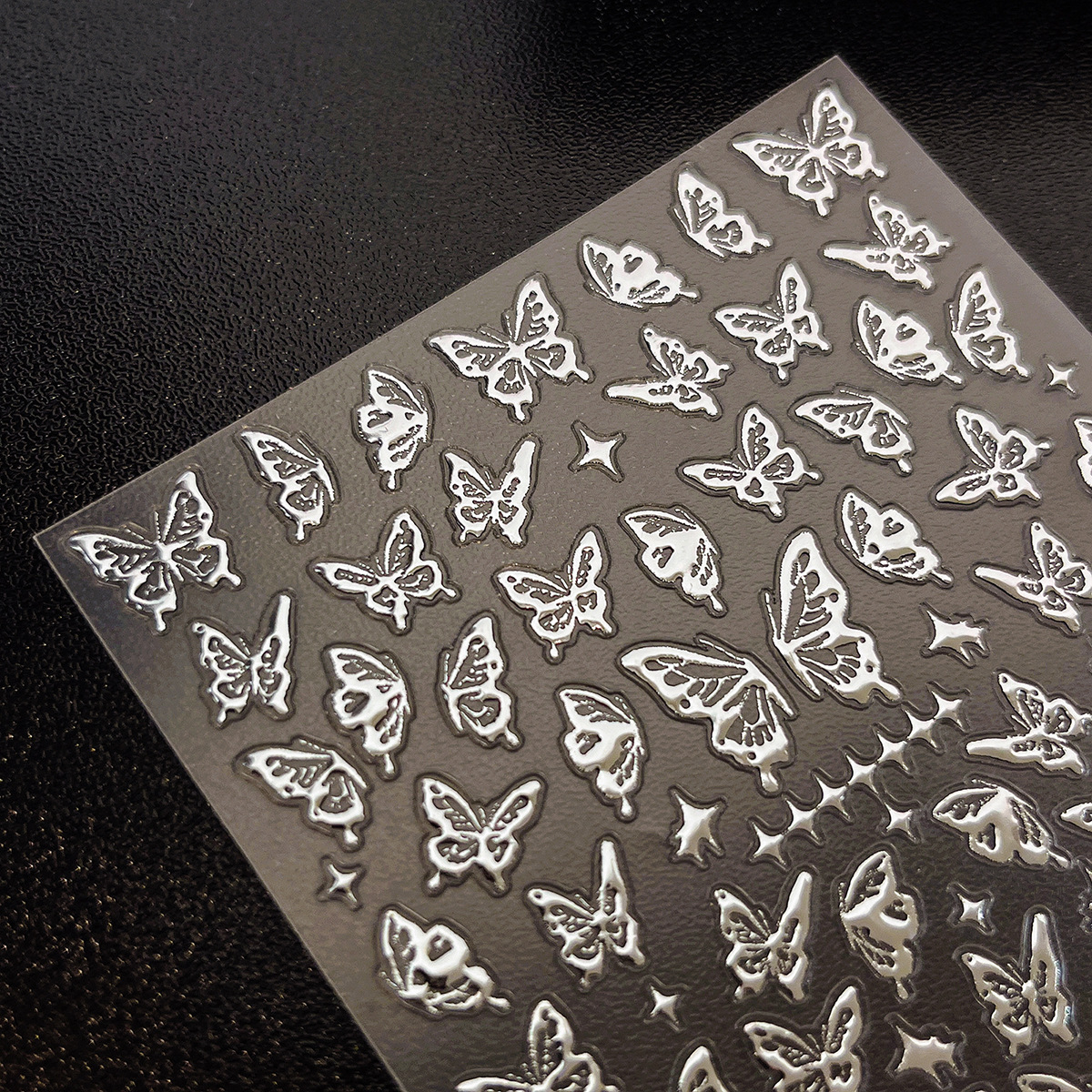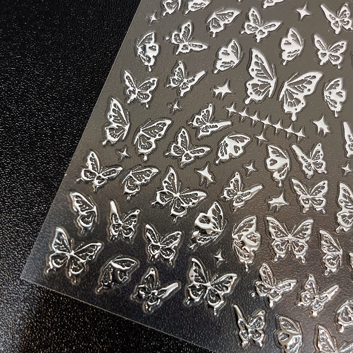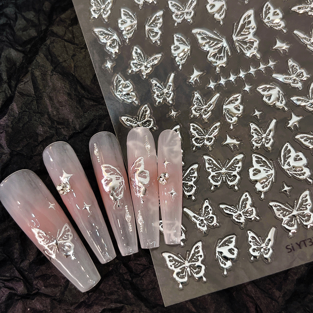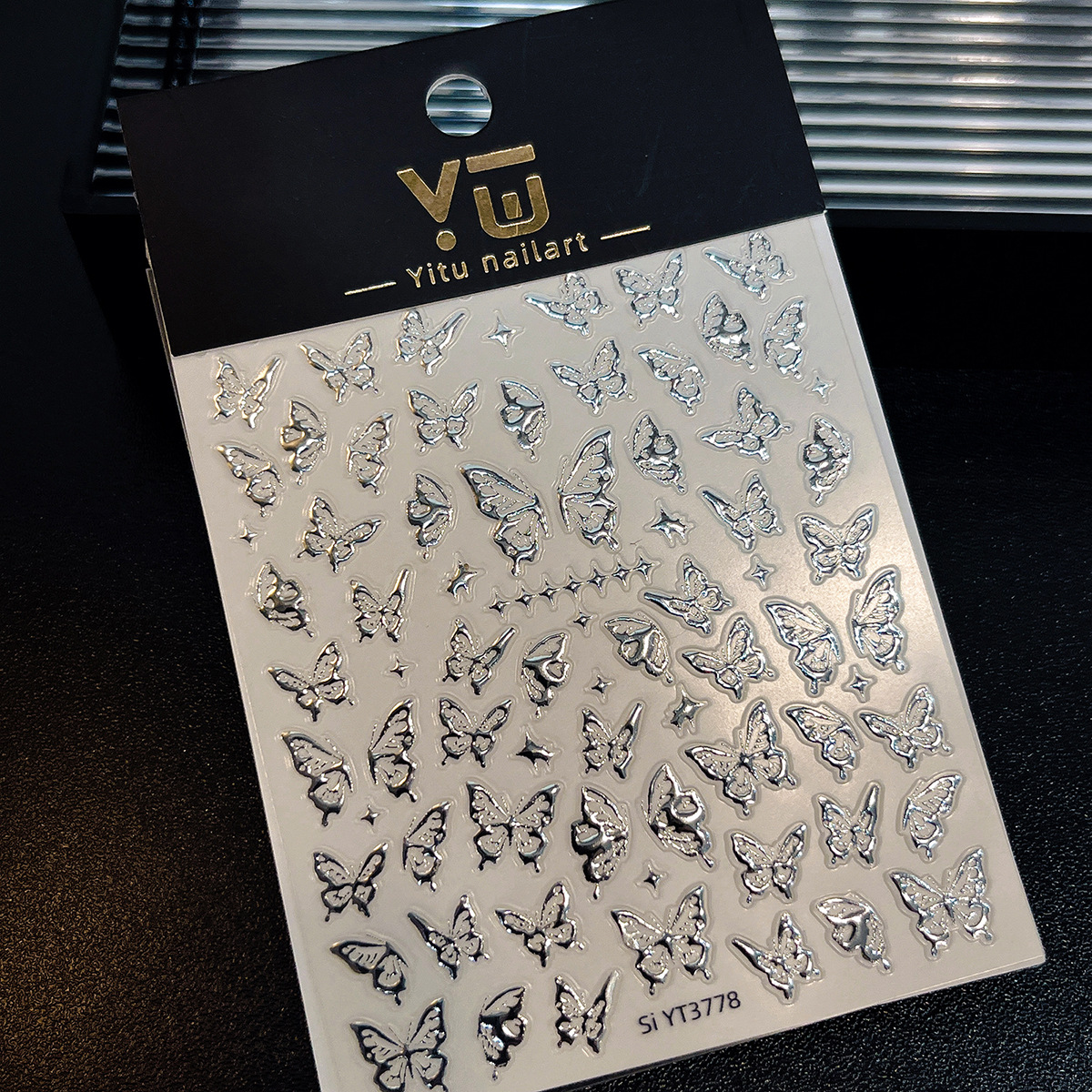 개미 그림 YITU 실버 액체 나비 네일 아트 스티커 뜨거운 실버 금속 네일 장식 스티커 도매 YT3778스토어 가기