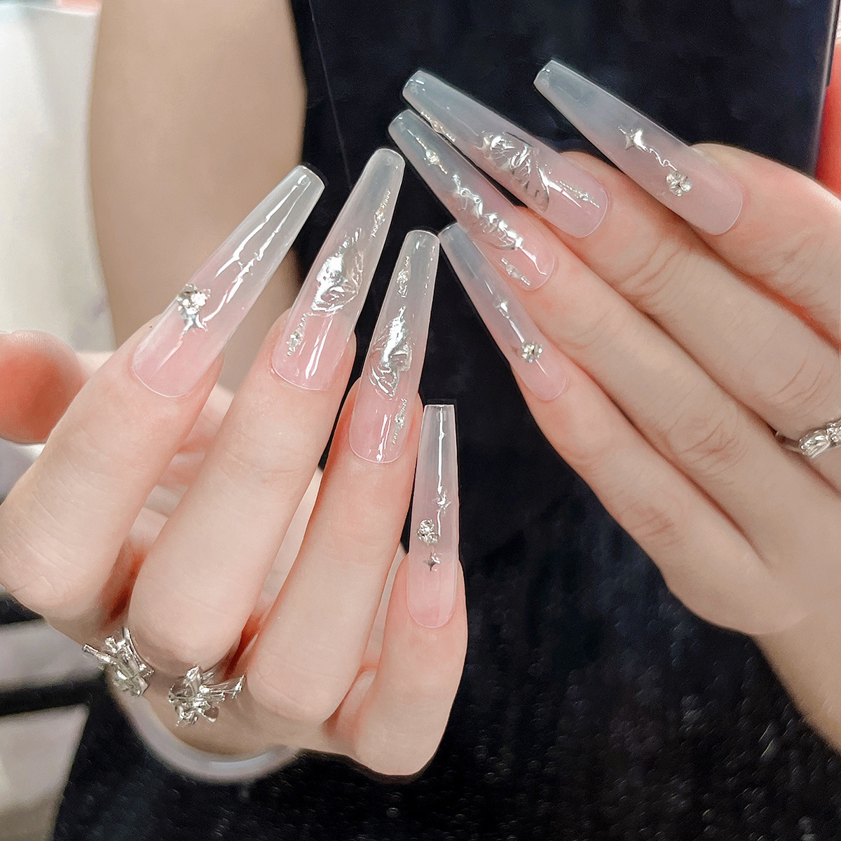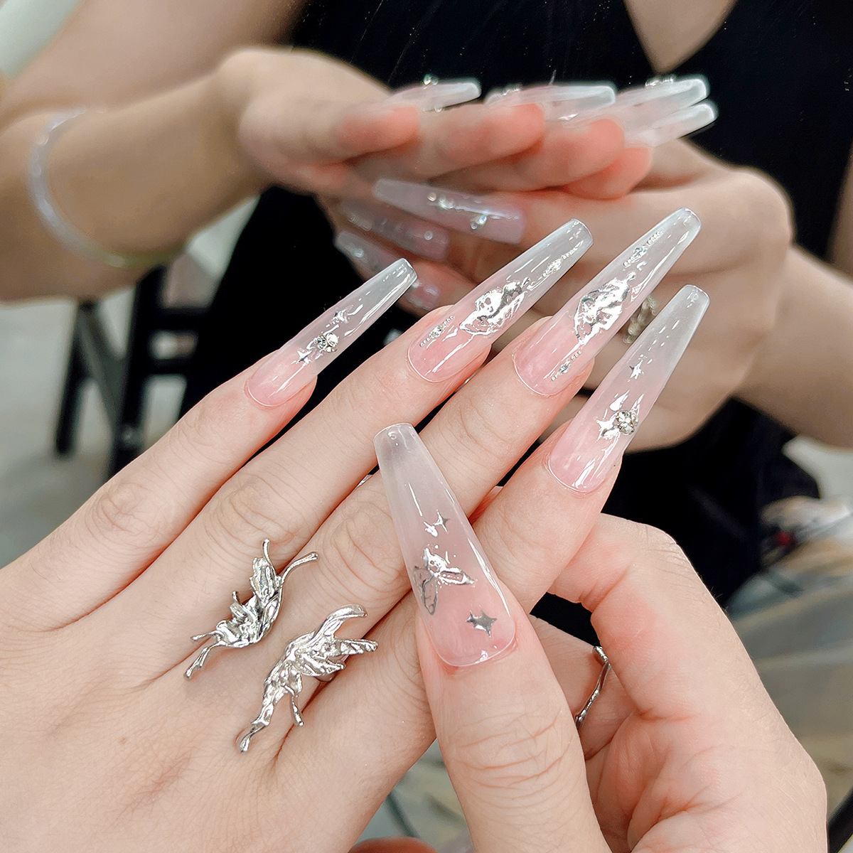 개미 그림 YITU 실버 액체 나비 네일 아트 스티커 뜨거운 실버 금속 네일 장식 스티커 도매 YT3778