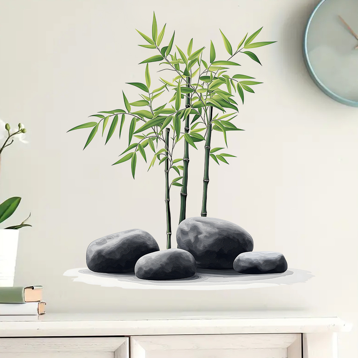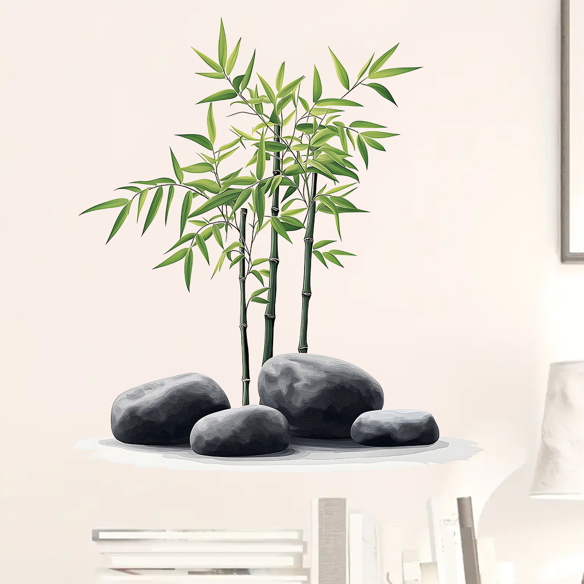 원예 대나무 예술 공장 사진 자기 접착 벽 스티커 방 입구 배경 벽 장식 스티커 HS0950E
