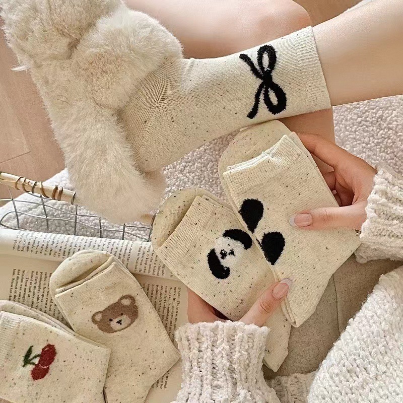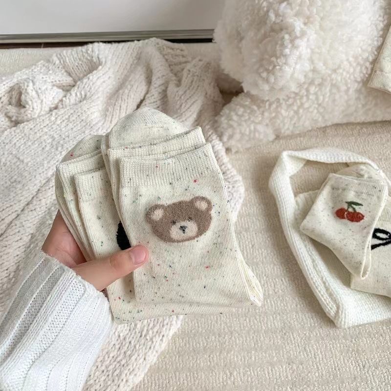 귀여운 양말 어린이 활 포인트 원사 중견 양말 한국 만화 곰 일본식 여성용 양말
