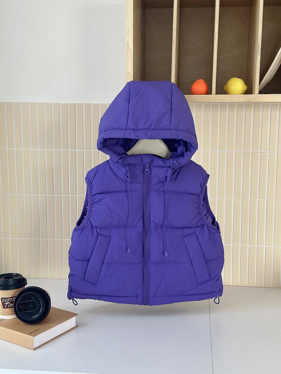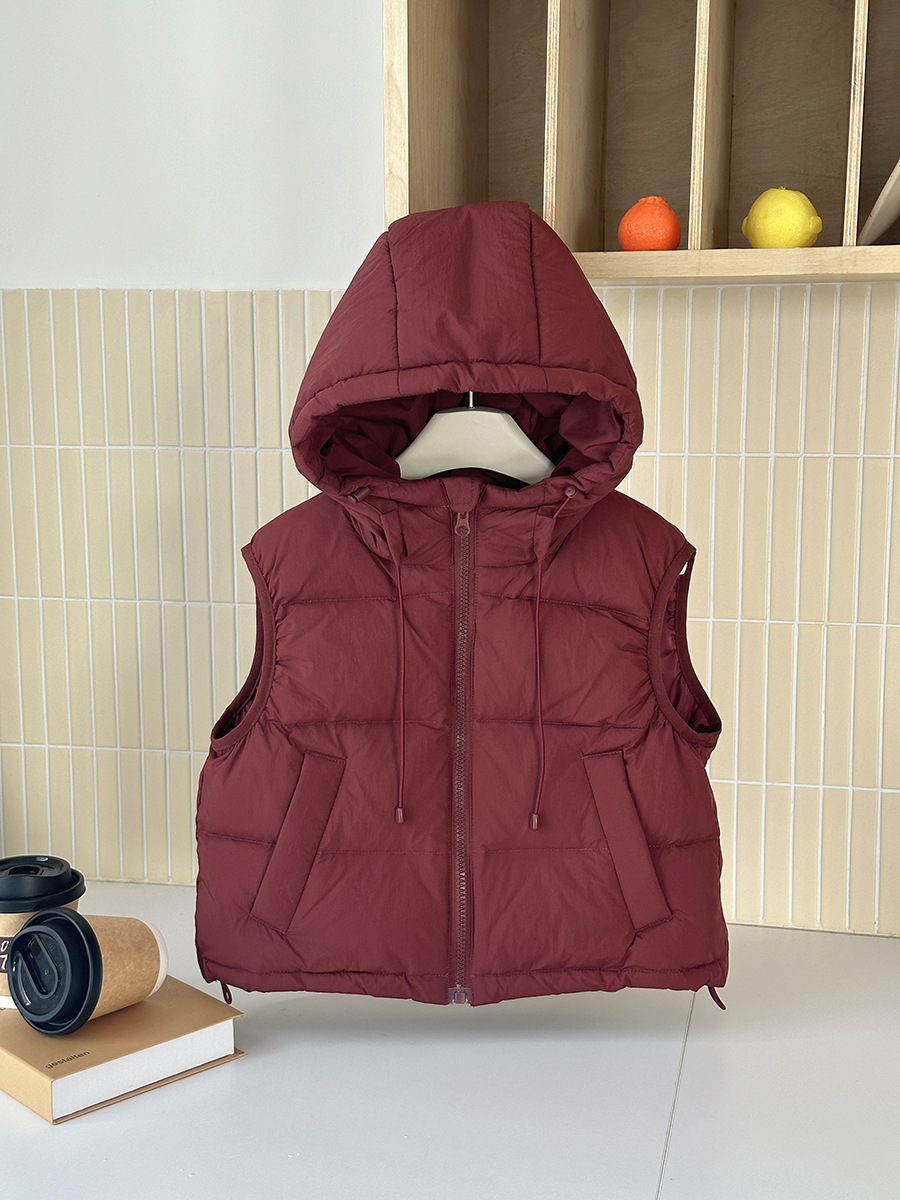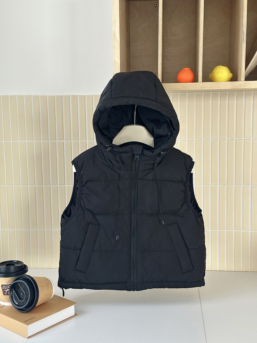 가을 겨울 신상 아동용 루즈핏 한국 스타일 조끼 아동복 캐주얼 방한 보온 후드 조끼 남아 여아용스토어 가기