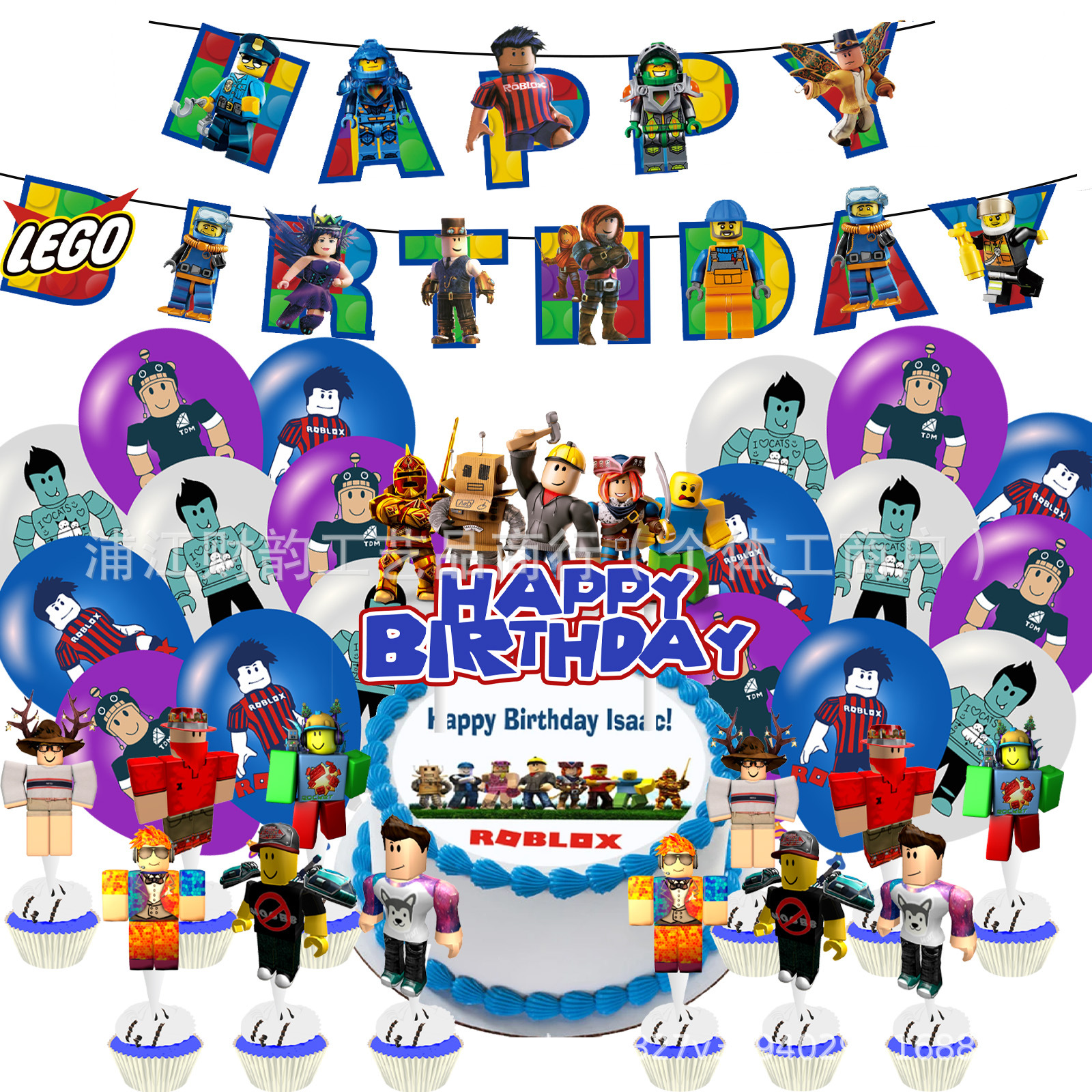 재고 로버트 테마 파티 장식 생일 깃발 케이크 풍선 줄 파티 장식 세트스토어 가기