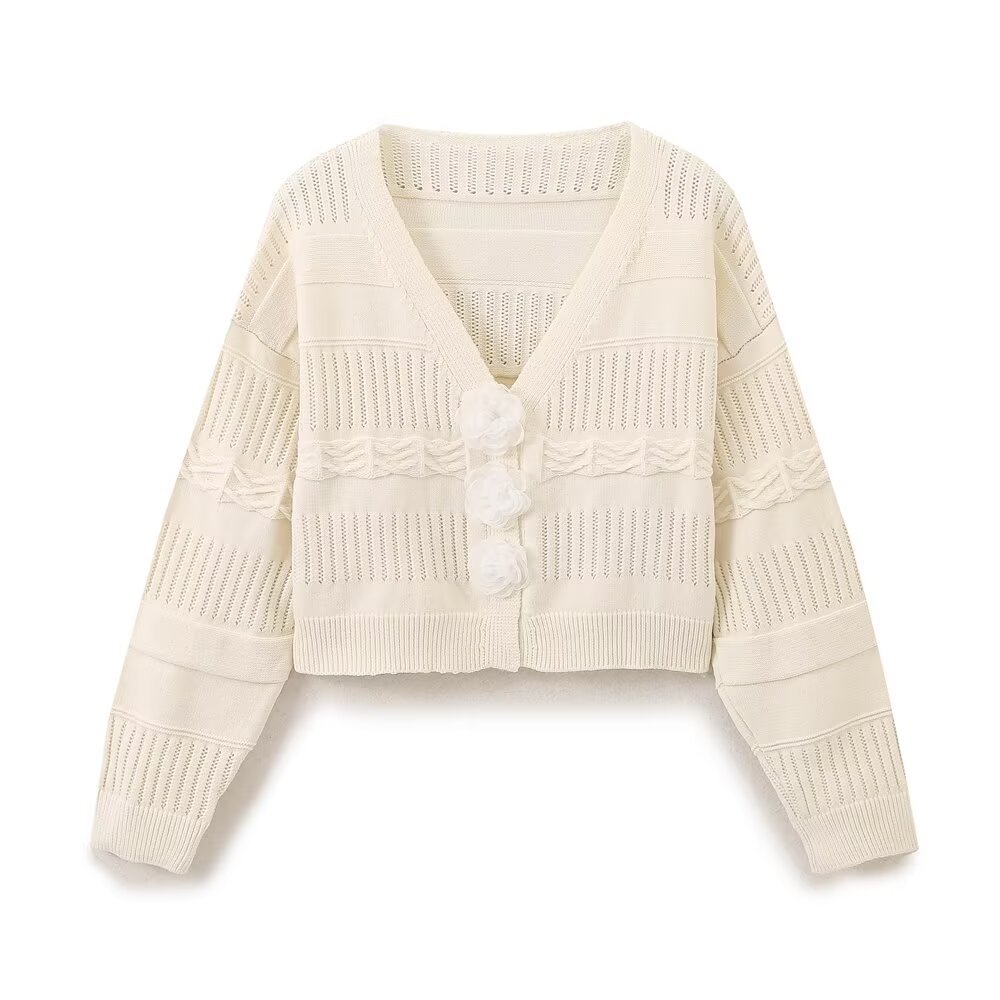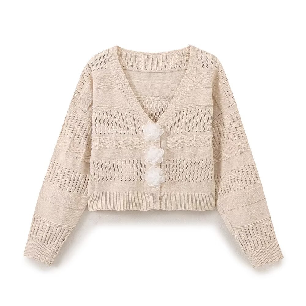UC & ZA 재고 리얼 샷 2024 가을 여성의 작은 향기로운 꽃 장식 버클 니트 카디건 짧은 스웨터 재킷스토어 가기