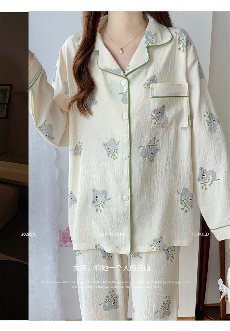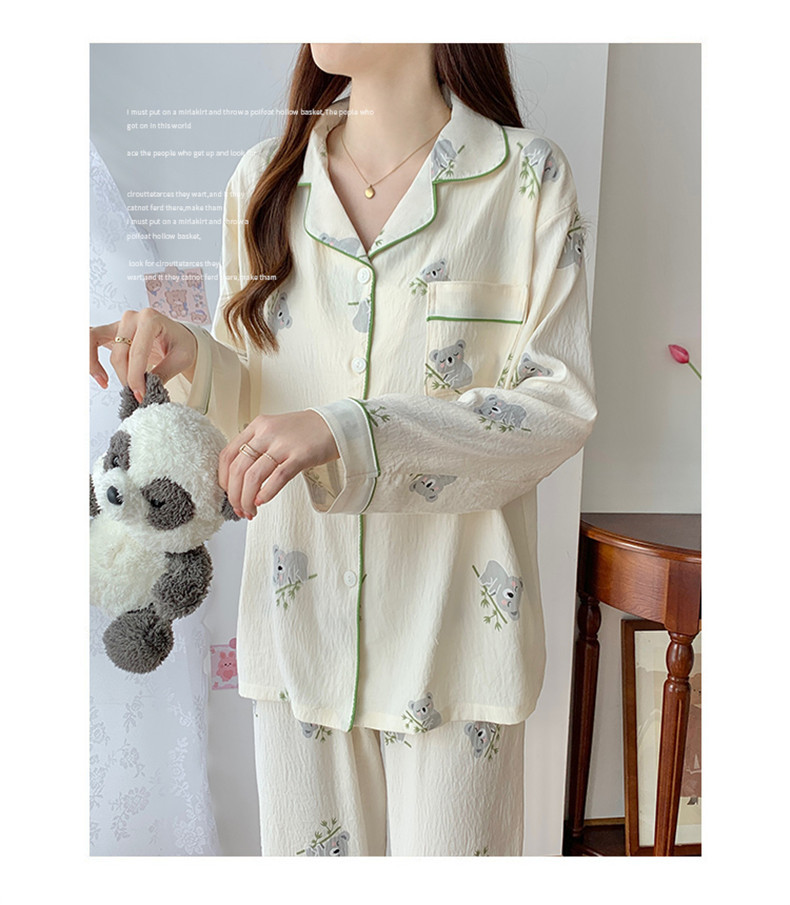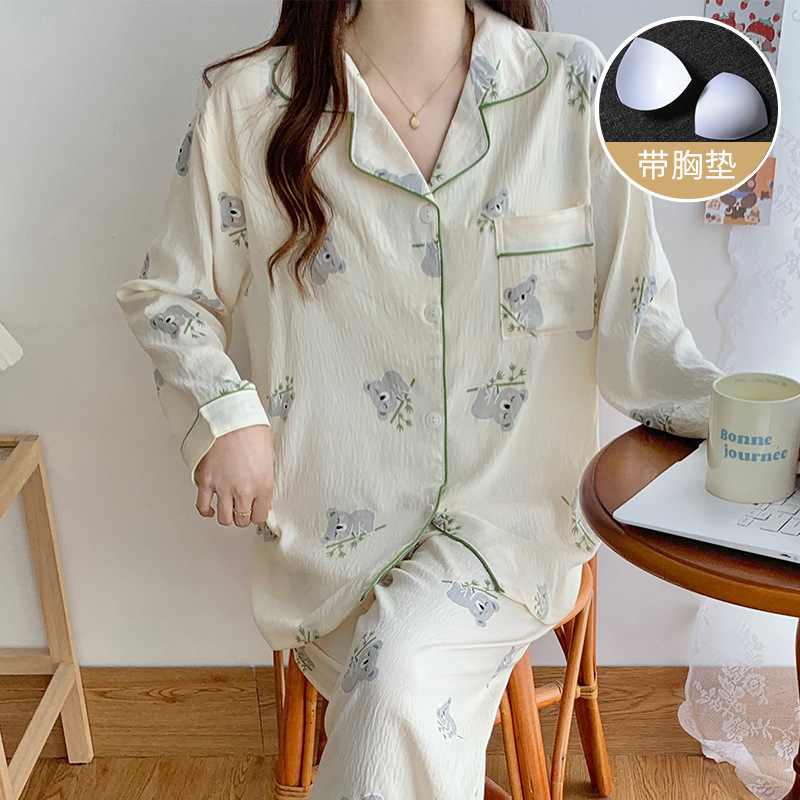 구름 코튼 파자마 여성의 봄과 가을 얇은 카디건 긴팔 바지, 가슴 패드 소녀의 달콤한 집 옷스토어 가기