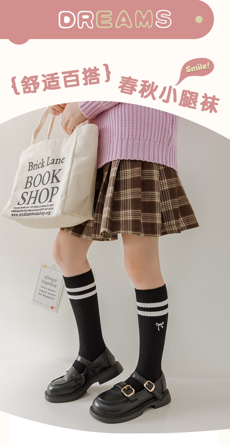 대학 활 자수 소녀 스타킹 봄과 가을 송아지 양말 어린이 단색 면 소년과 소녀 학생 양말스토어 가기