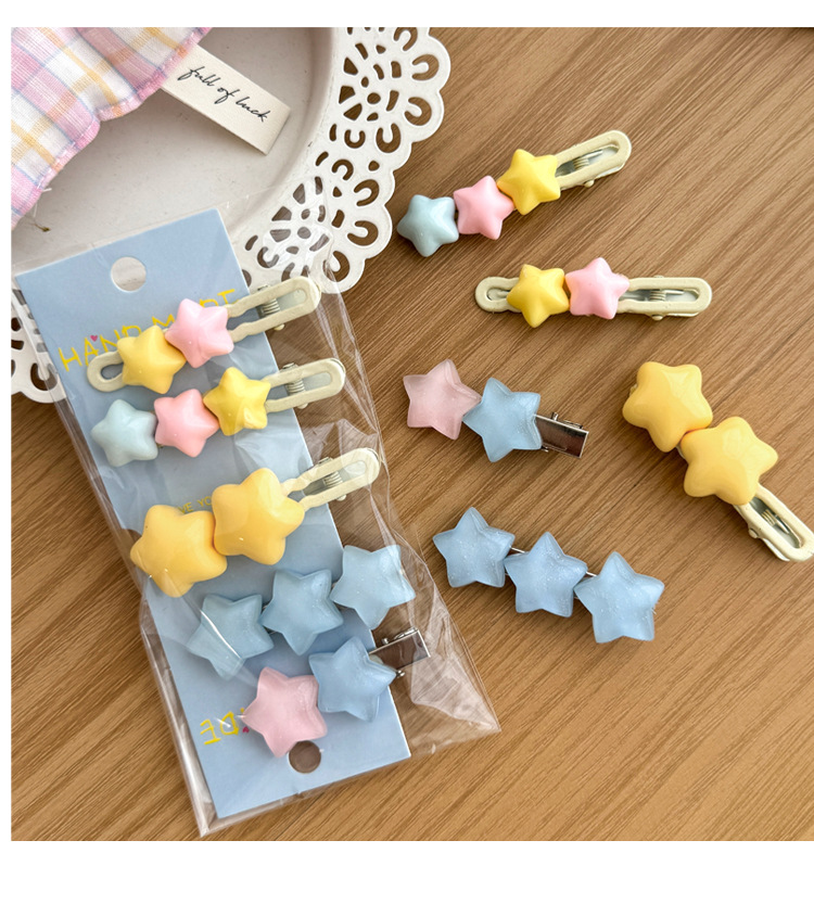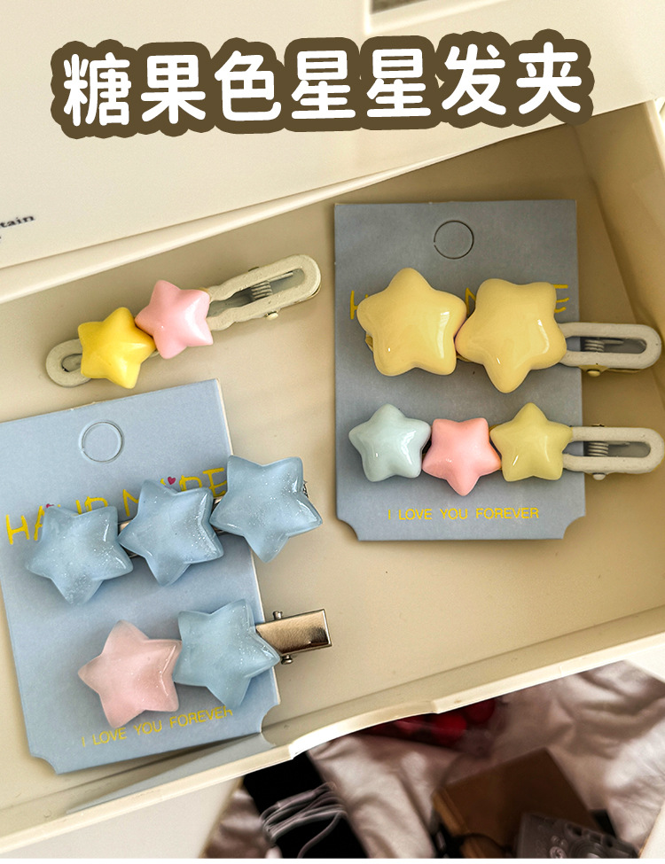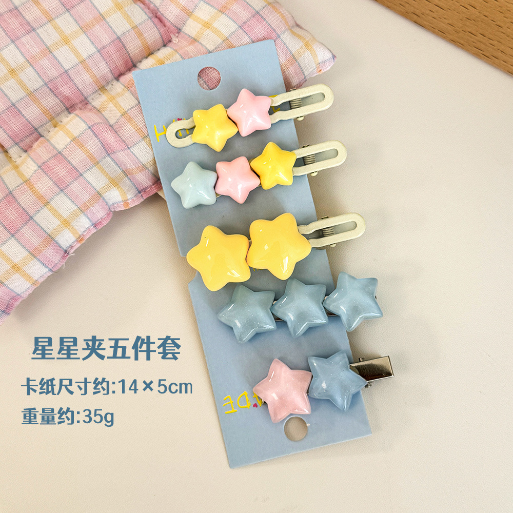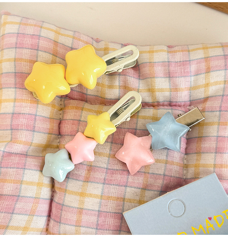 캔디 컬러 크리에이티브 스타 헤어핀 귀여운 소녀 뱅 사이드 클립 하이 컬러 값 5 점 스타 올매치 헤어핀스토어 가기