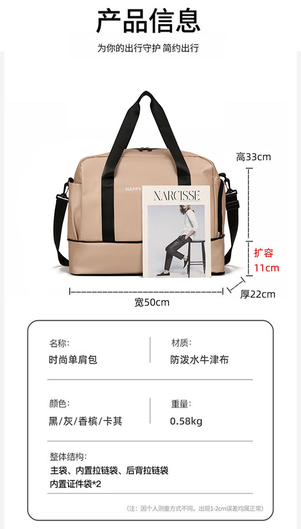 단거리 여행 가방 유행 경량 휴대용 수하물 가방 방수 의류 보관 가방 건조하고 젖은 분리 요가 체육관 가방