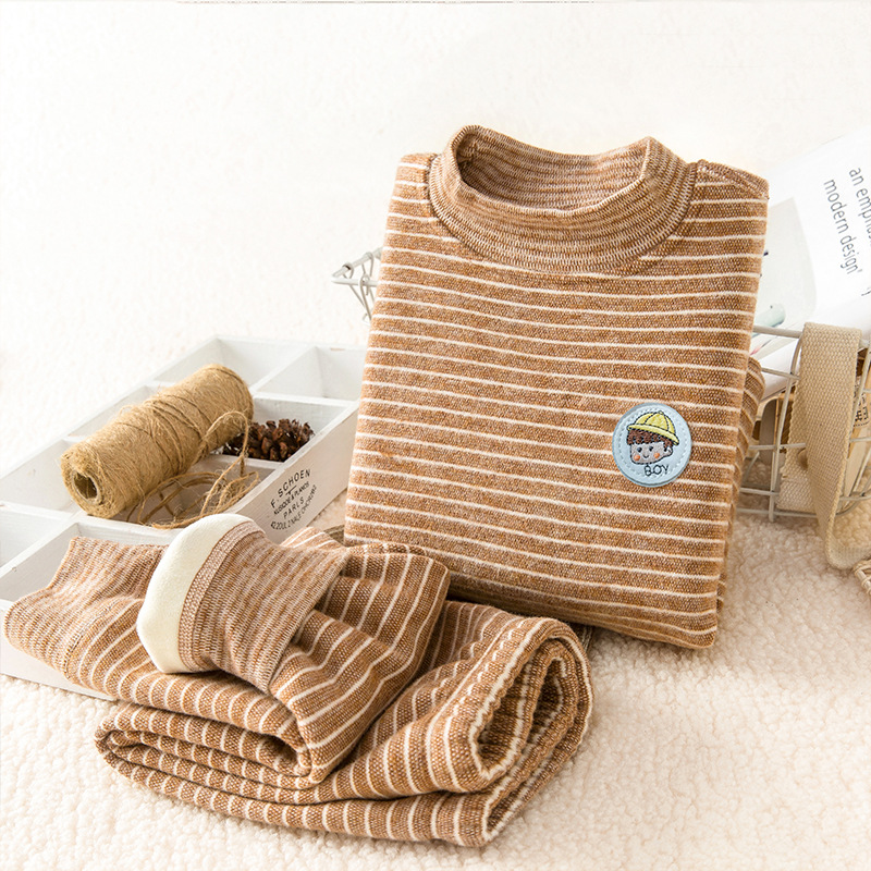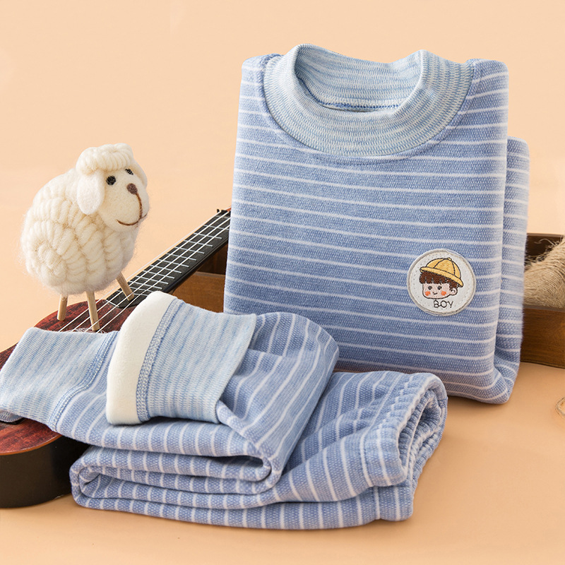 아동용 보온 속옷, 벨벳과 두꺼운 가을 겨울 새로운 스타일의 가을 옷과 소년 소녀용 긴 바지 세트, 올인원 벨벳 아기 잠옷스토어 가기
