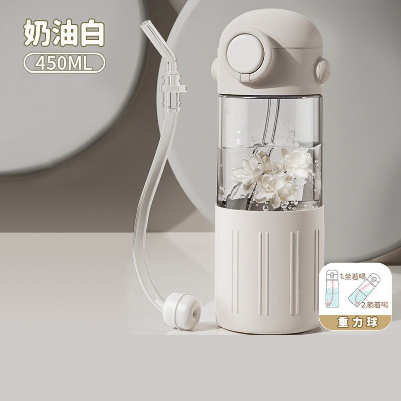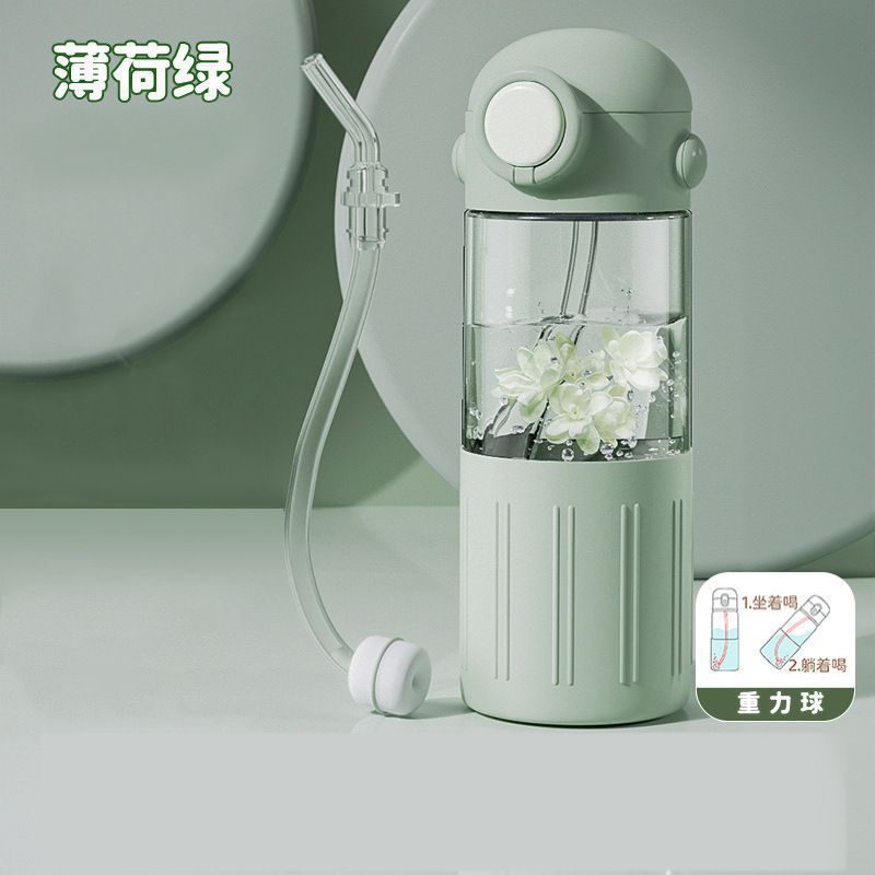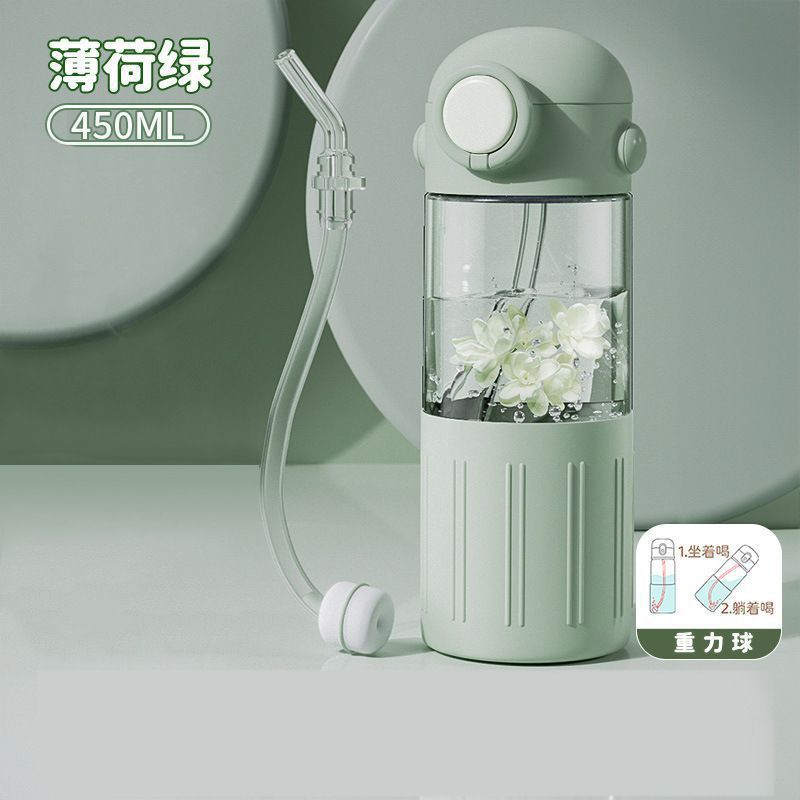 임산부의 밀짚 유리 중력 공 모성 성인 휴대용 지능형 온도 측정 물 컵을 마시기 위해 누워