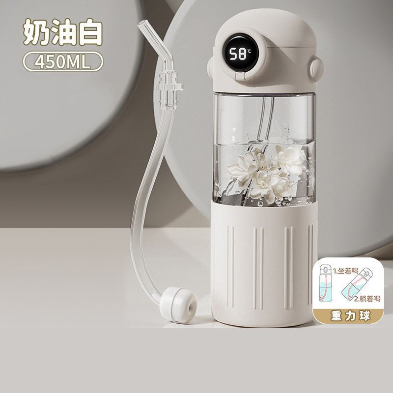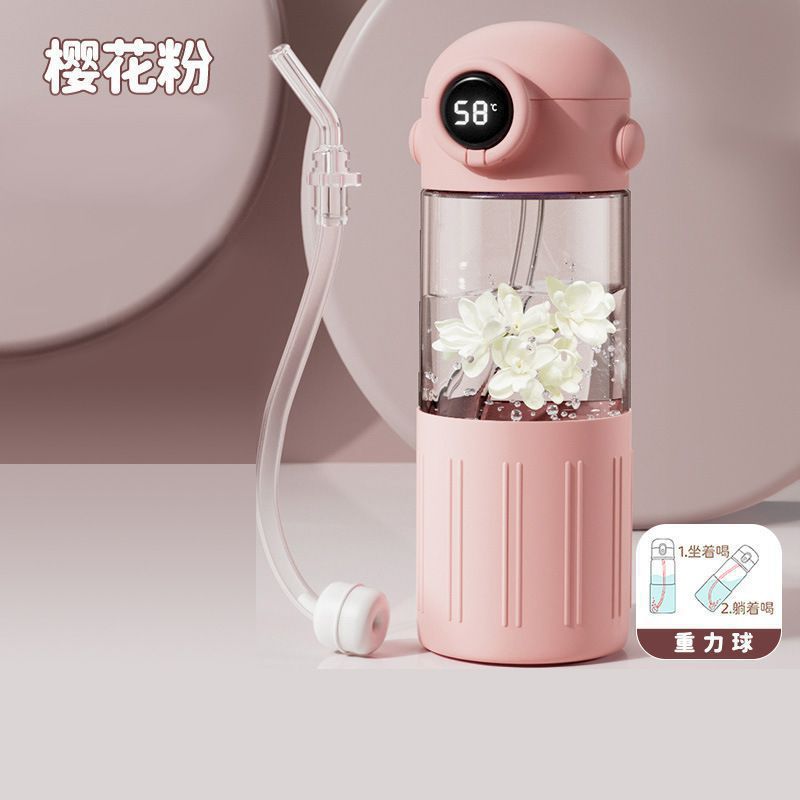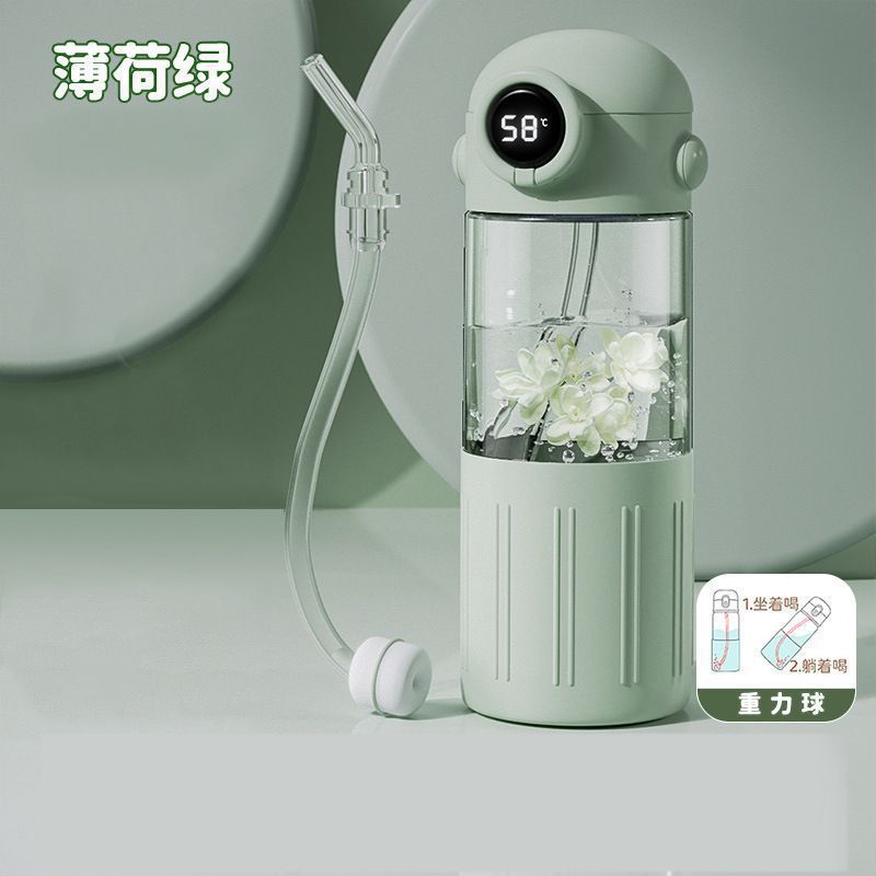 임산부의 밀짚 유리 중력 공 모성 성인 휴대용 지능형 온도 측정 물 컵을 마시기 위해 누워스토어 가기