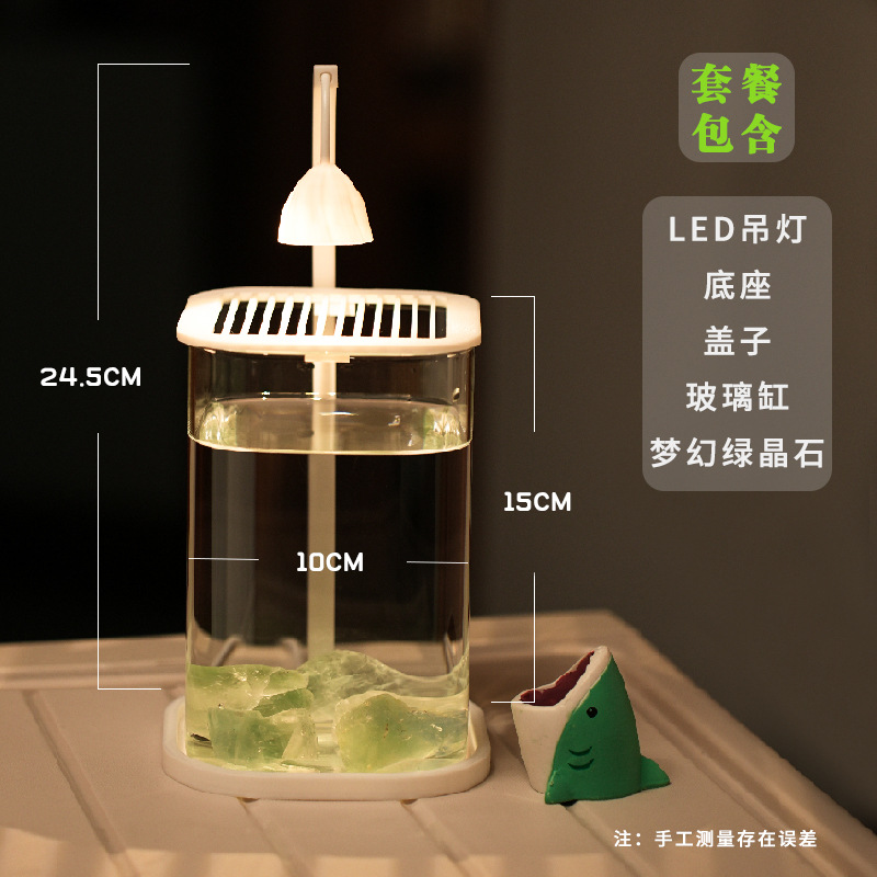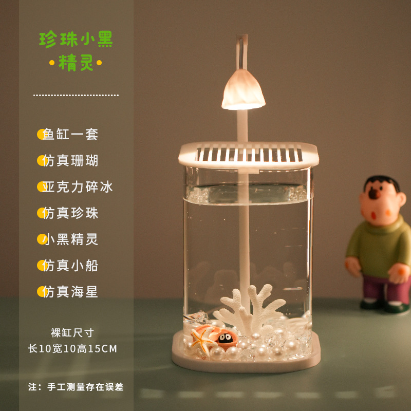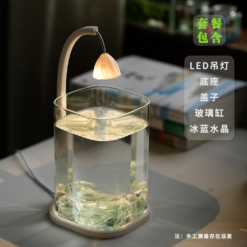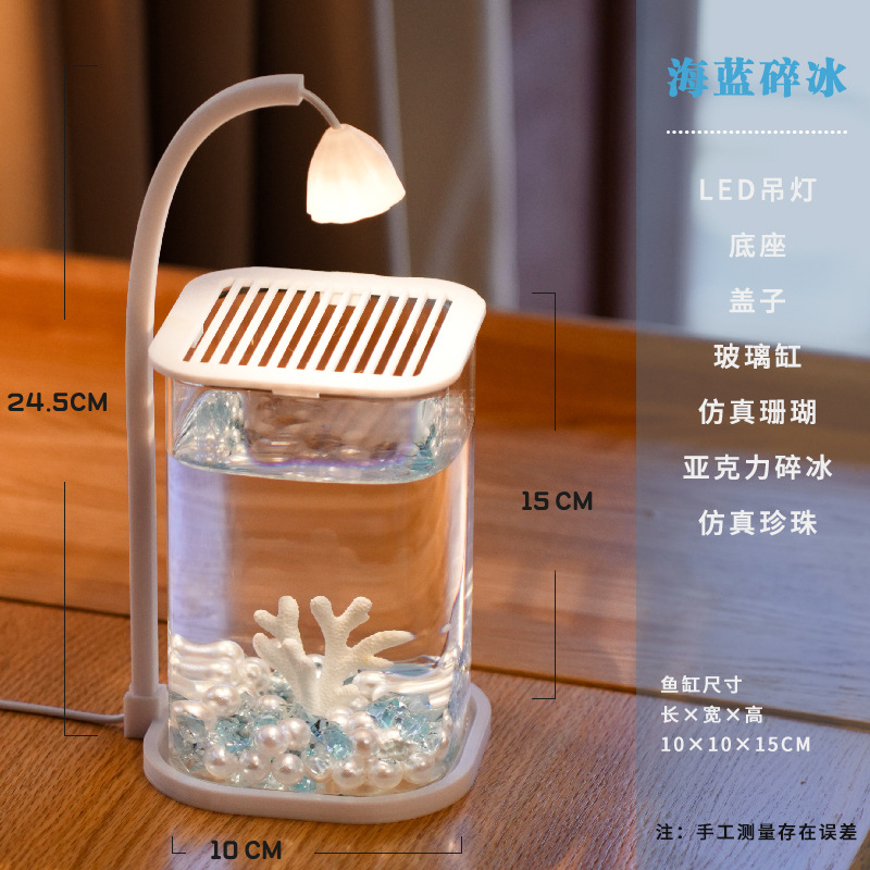 어항 거실을위한 작은 유리 게으른 물고기 탱크 창조적 인 데스크탑 장식품 높은 수준의 야간 조명