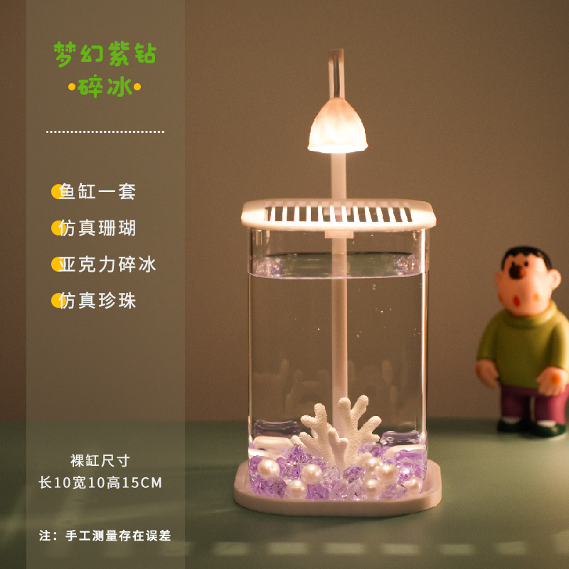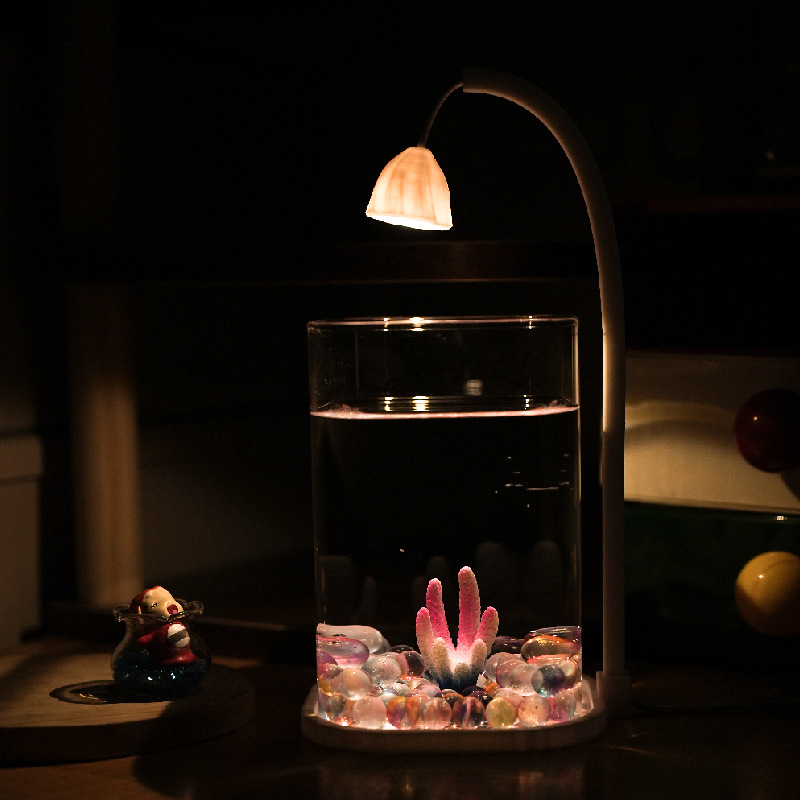 어항 거실을위한 작은 유리 게으른 물고기 탱크 창조적 인 데스크탑 장식품 높은 수준의 야간 조명스토어 가기