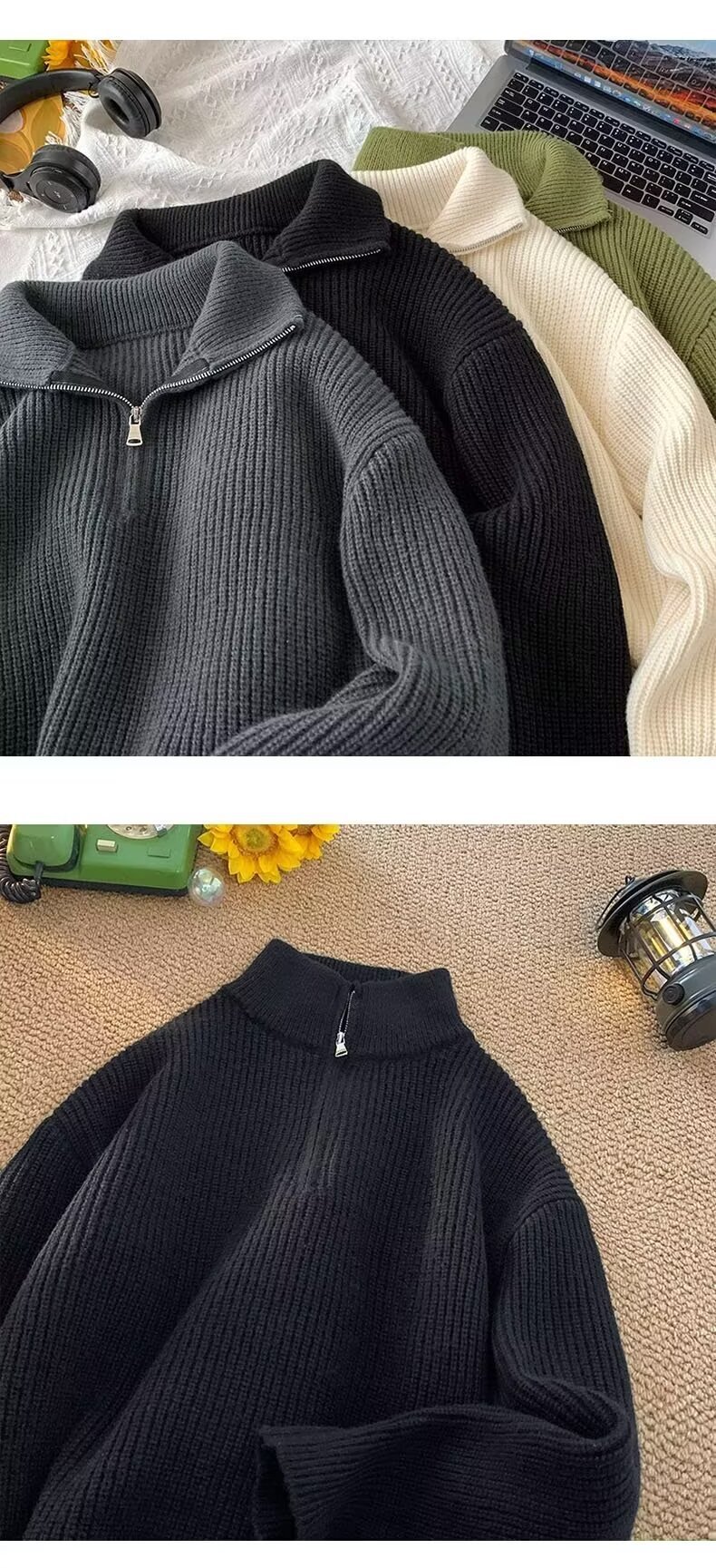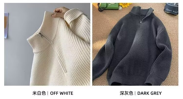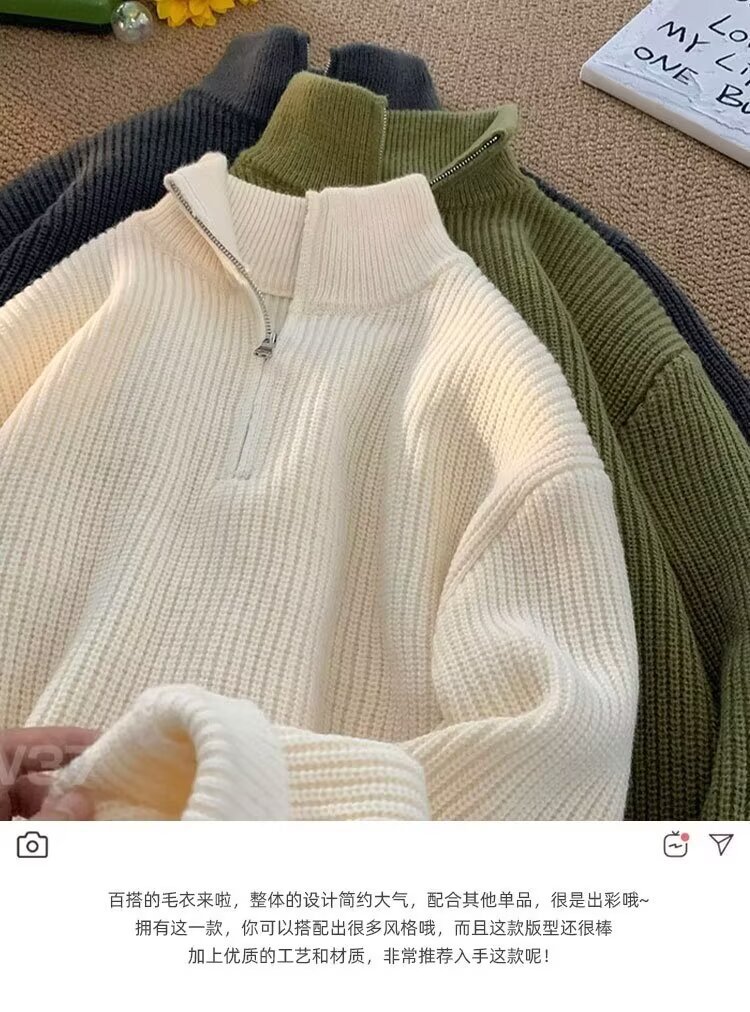 하프 지퍼 옷깃 단색 스웨터 남자 게으른 패션 브랜드 미국 스타일 캐주얼 레트로 느슨한 올 매치 풀오버 스웨터