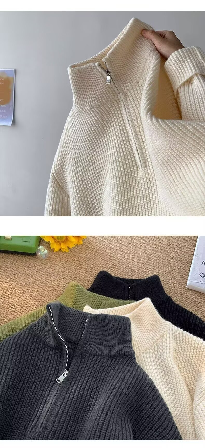 하프 지퍼 옷깃 단색 스웨터 남자 게으른 패션 브랜드 미국 스타일 캐주얼 레트로 느슨한 올 매치 풀오버 스웨터스토어 가기