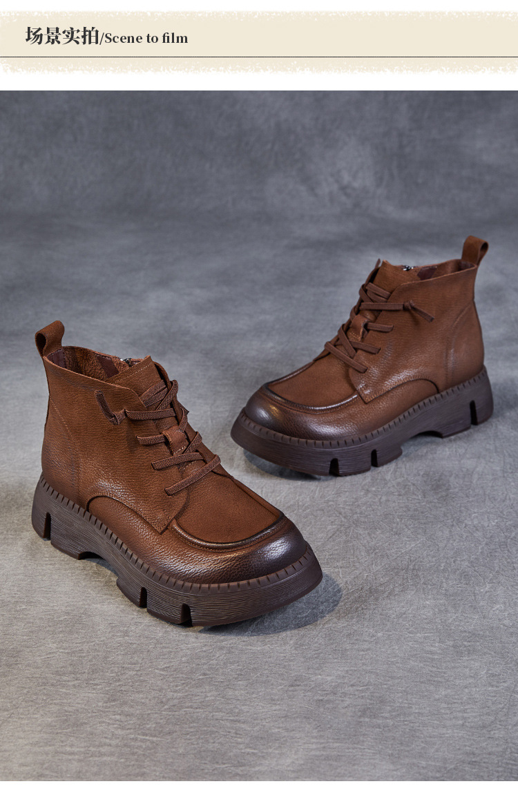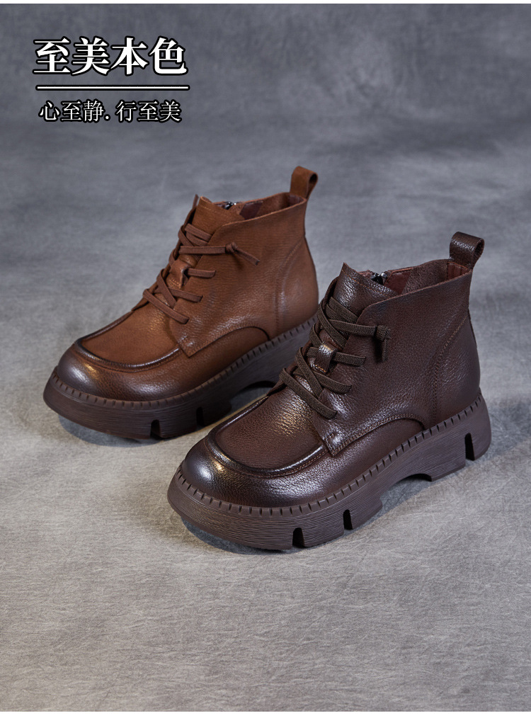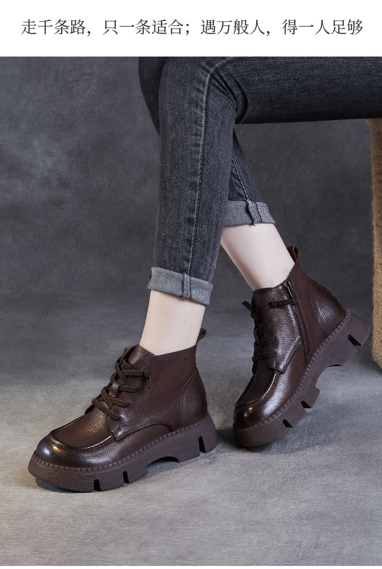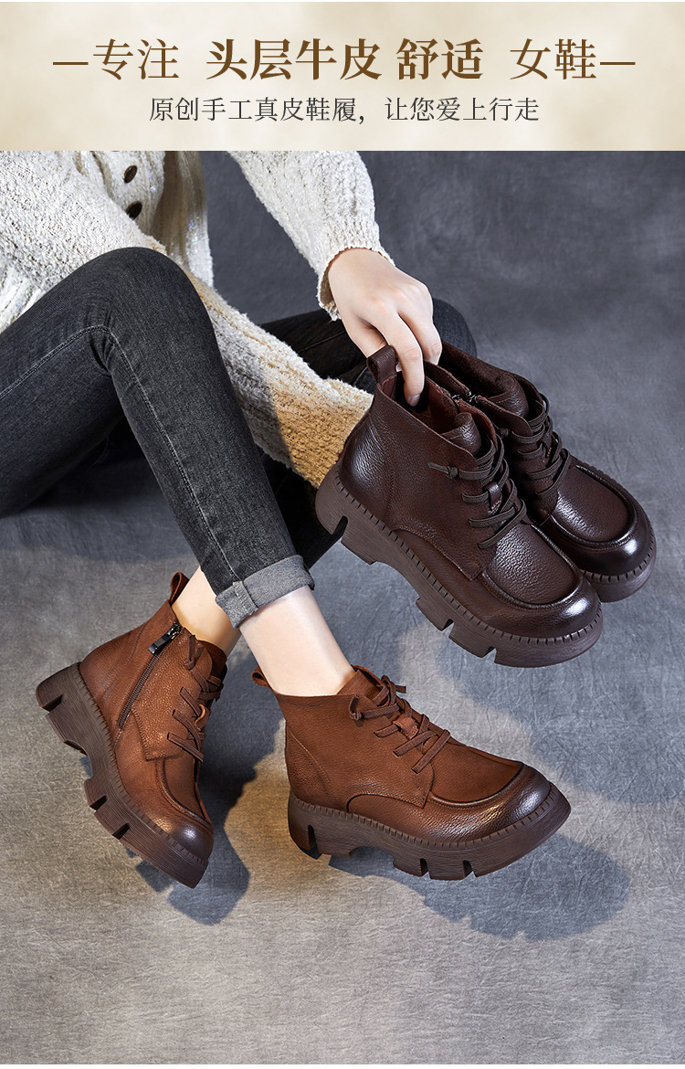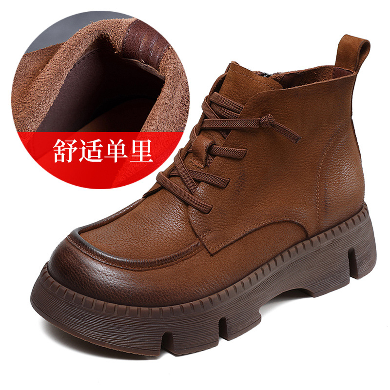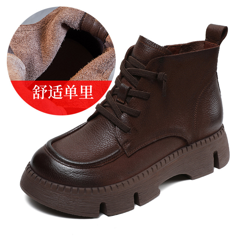 Top Layer Cowhide Vintage Martin 부츠 여성 싱글 부츠 2024 가을 새로운 두꺼운 유일한 편안한 수제 정품 가죽 영국 발목 부츠스토어 가기