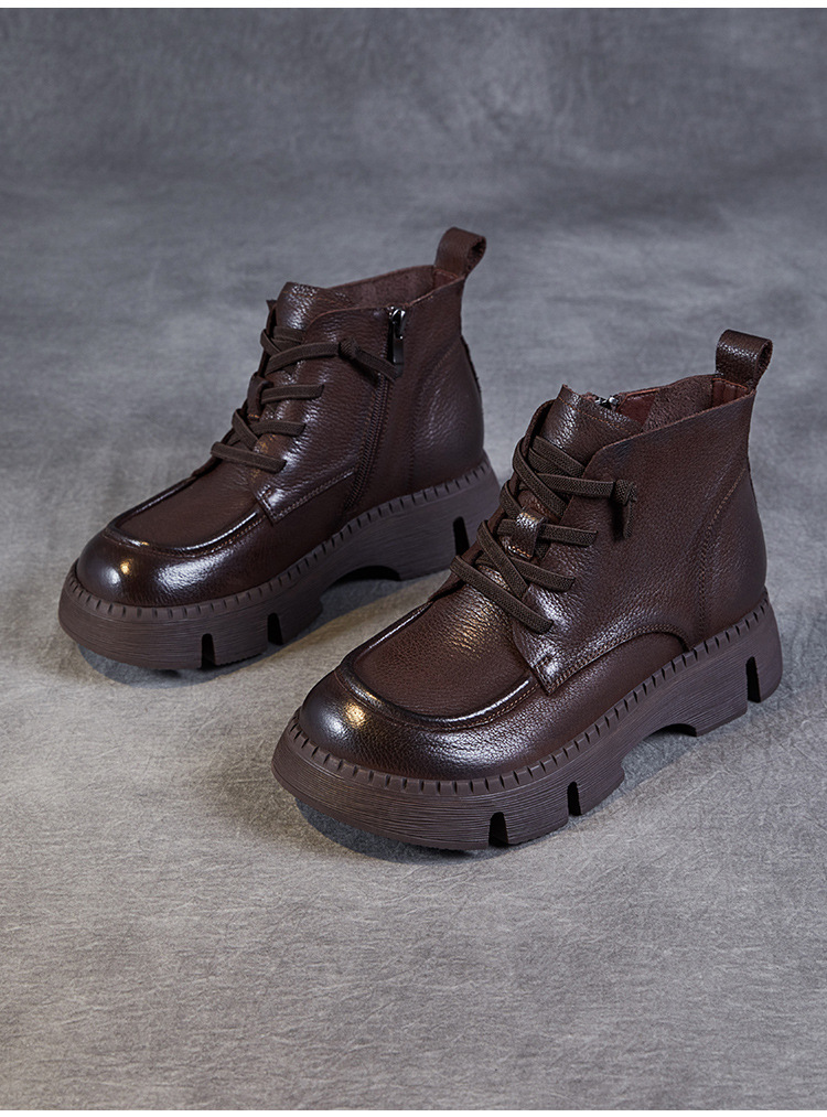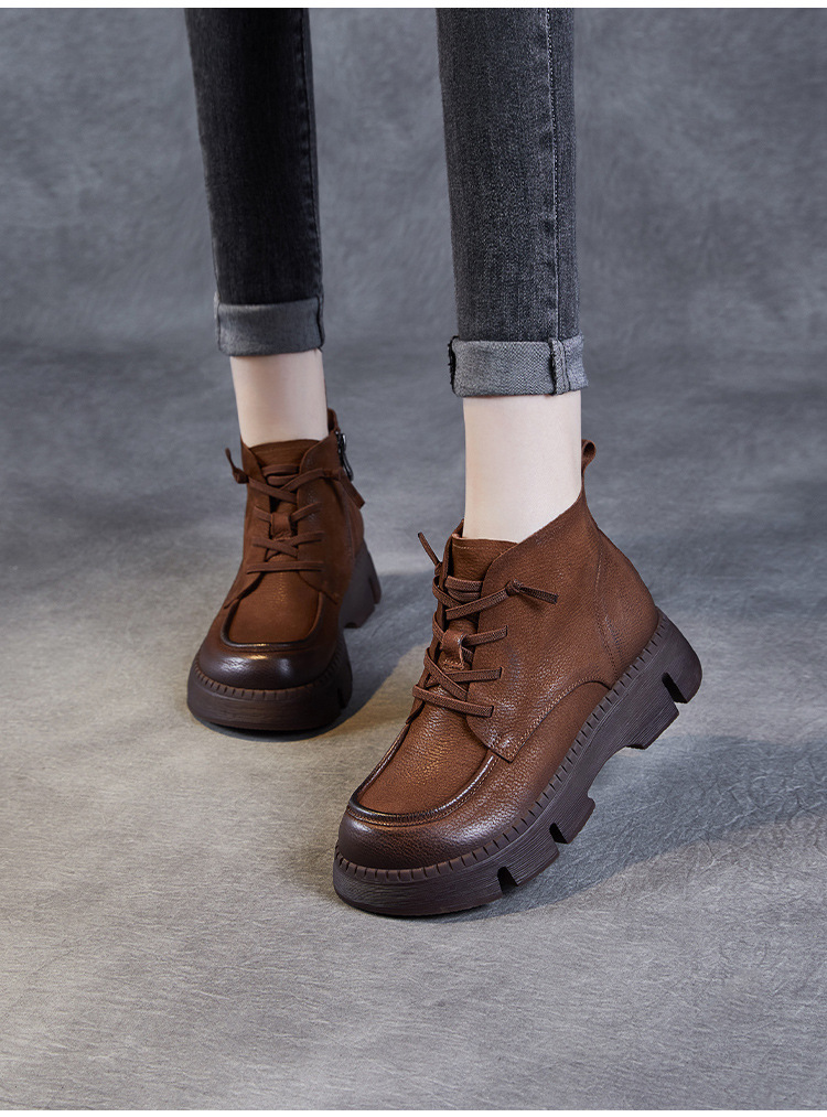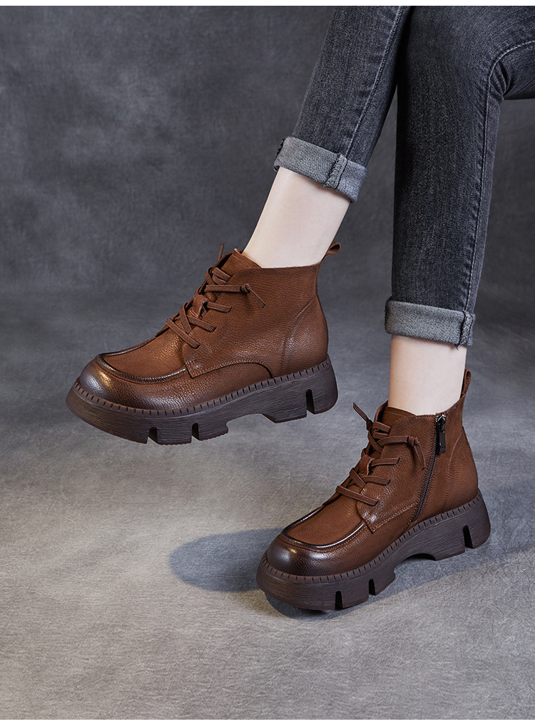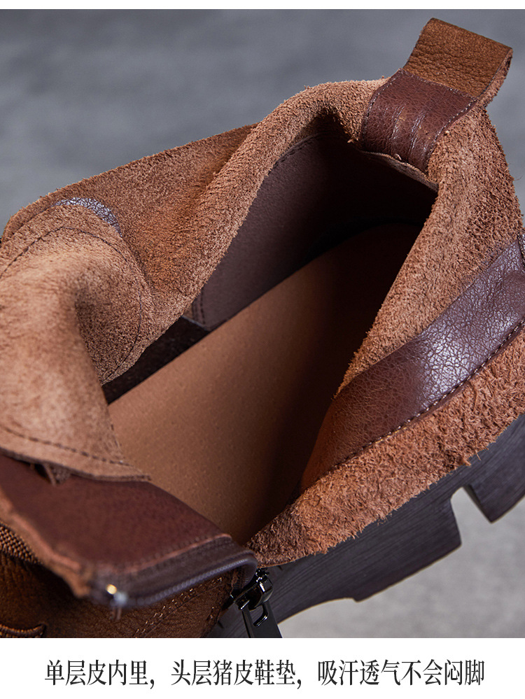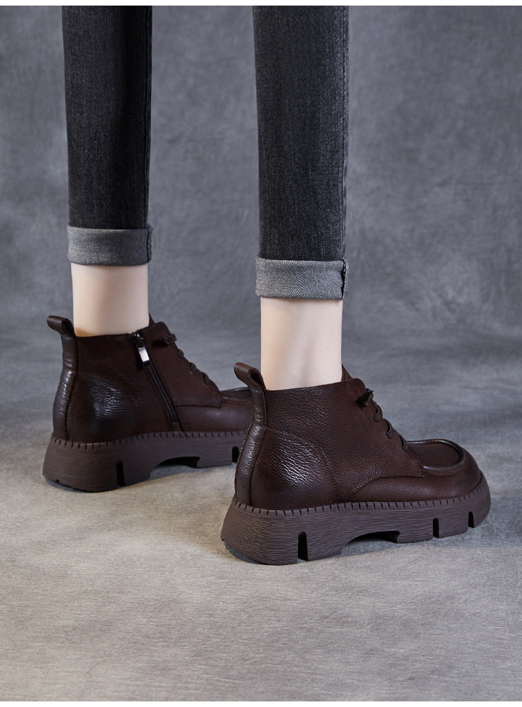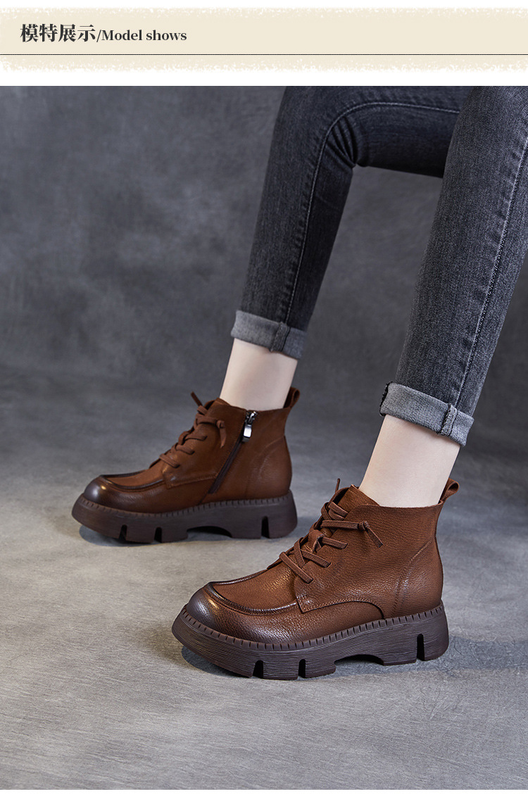 Top Layer Cowhide Vintage Martin 부츠 여성 싱글 부츠 2024 가을 새로운 두꺼운 유일한 편안한 수제 정품 가죽 영국 발목 부츠스토어 가기