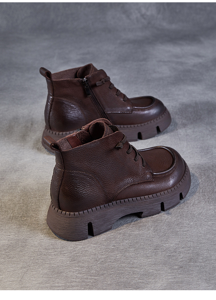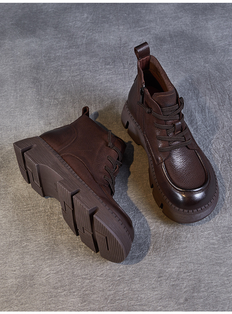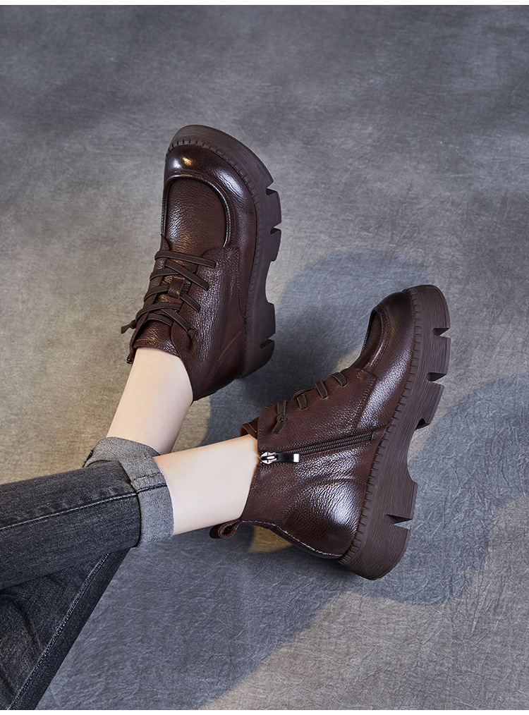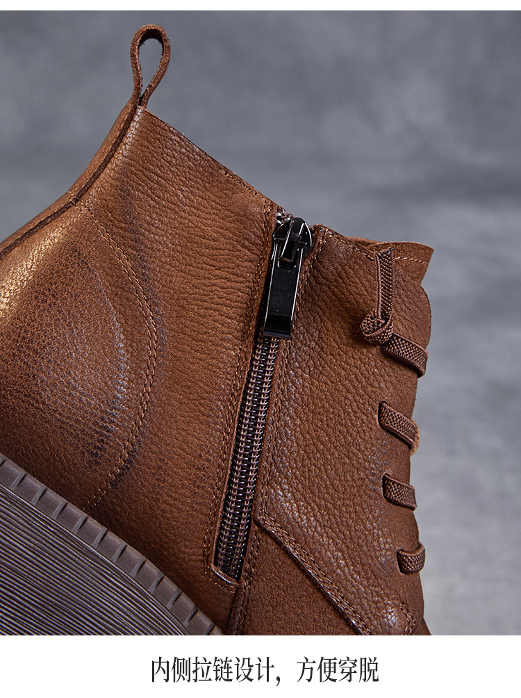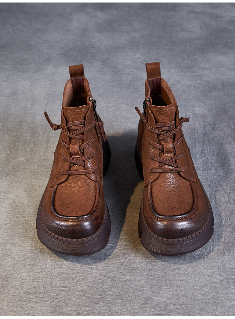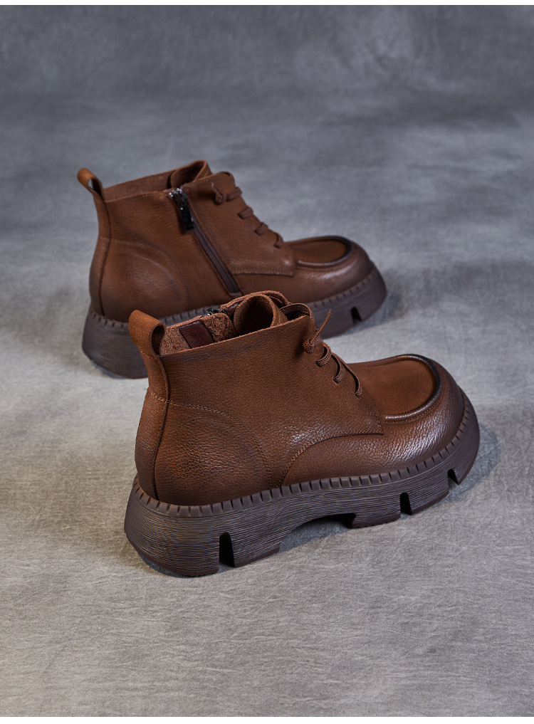 Top Layer Cowhide Vintage Martin 부츠 여성 싱글 부츠 2024 가을 새로운 두꺼운 유일한 편안한 수제 정품 가죽 영국 발목 부츠스토어 가기
