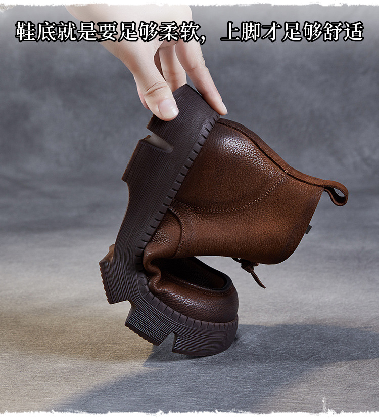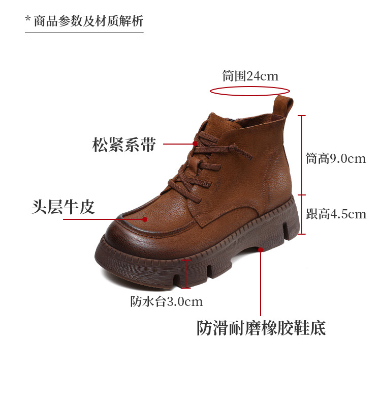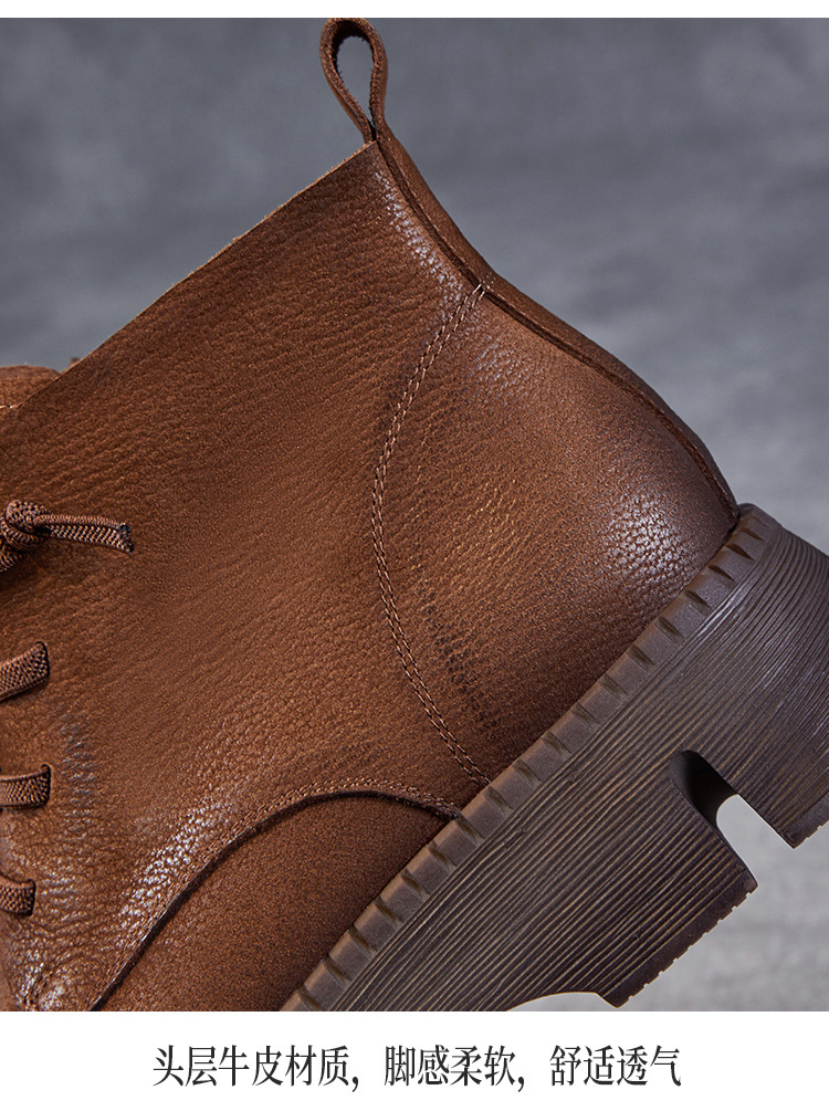 Top Layer Cowhide Vintage Martin 부츠 여성 싱글 부츠 2024 가을 새로운 두꺼운 유일한 편안한 수제 정품 가죽 영국 발목 부츠