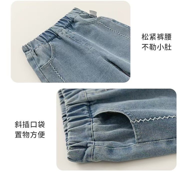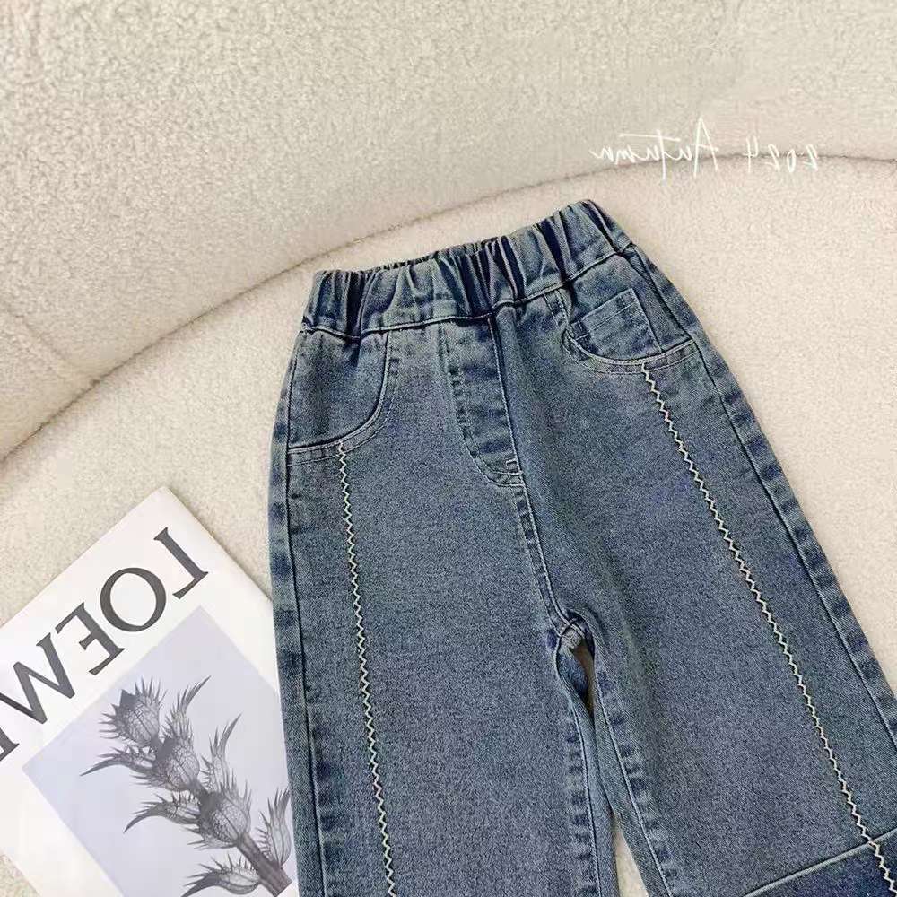 소녀 초승달 포켓 롤업 청바지 2024 가을 유치한 귀여운 피부 친화적 인 부드러운 느슨한 스트레이트 바지 봄과 가을스토어 가기