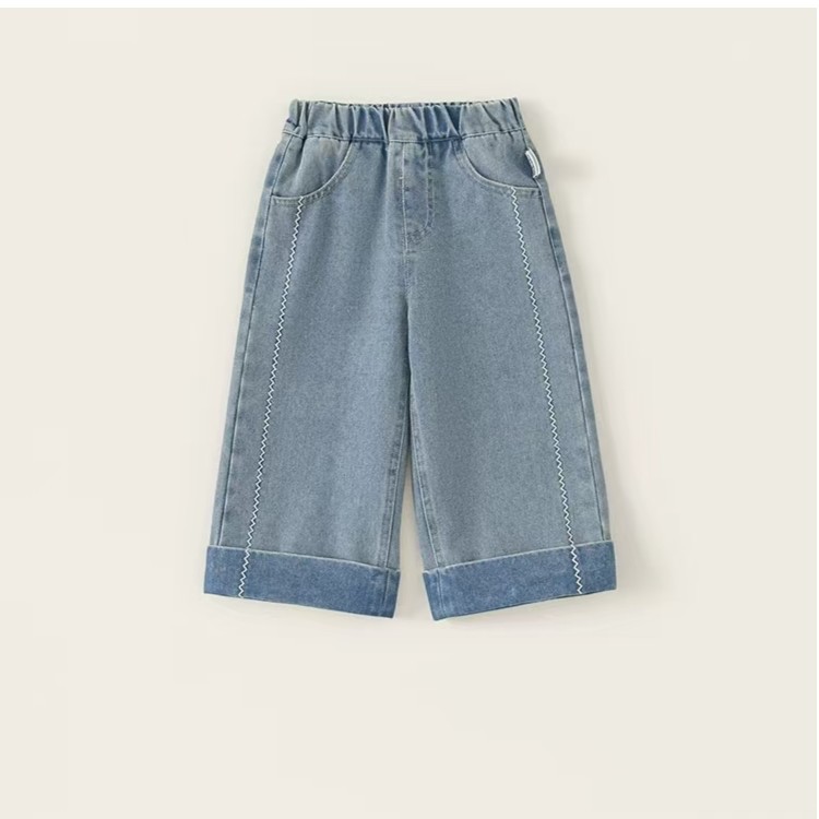 소녀 초승달 포켓 롤업 청바지 2024 가을 유치한 귀여운 피부 친화적 인 부드러운 느슨한 스트레이트 바지 봄과 가을