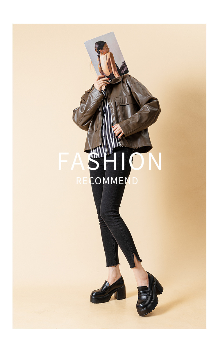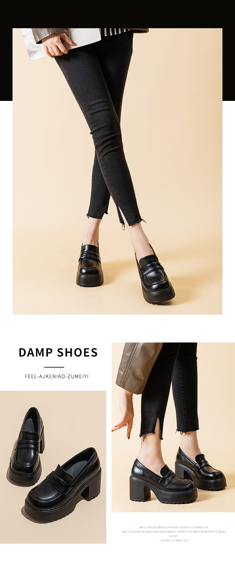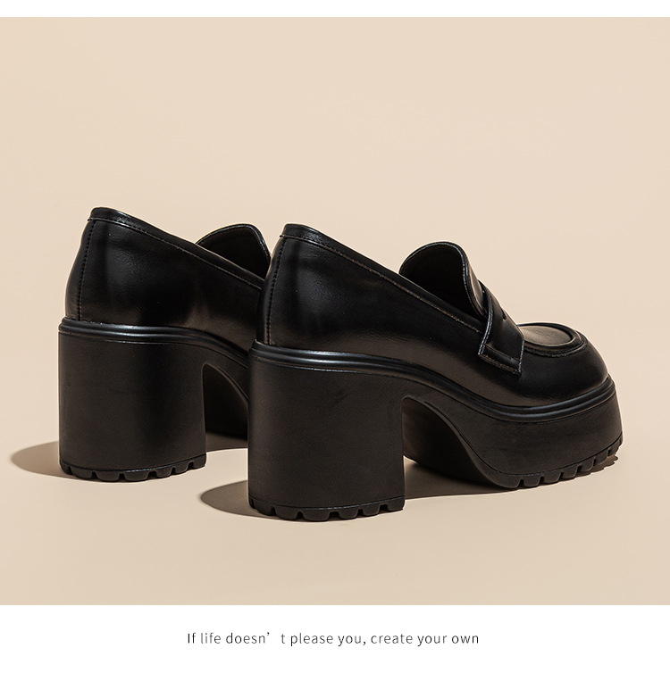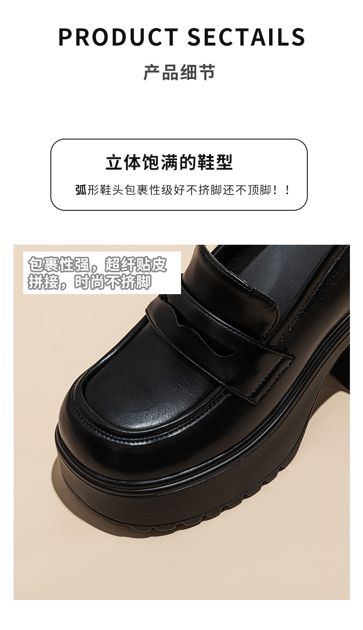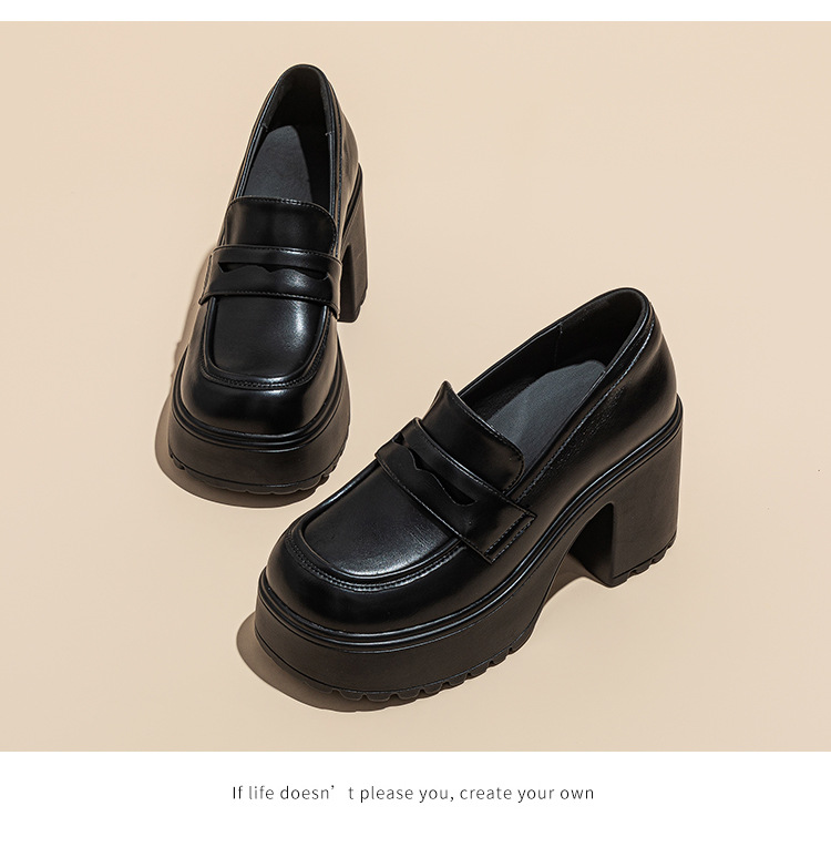 내부 높이 증가 작은 가죽 신발 라운드 머리 두꺼운 바닥 로퍼 여성의 2024 새로운 스타일 슬립 온 블랙 싱글 신발 두꺼운 가열 영국 스타일