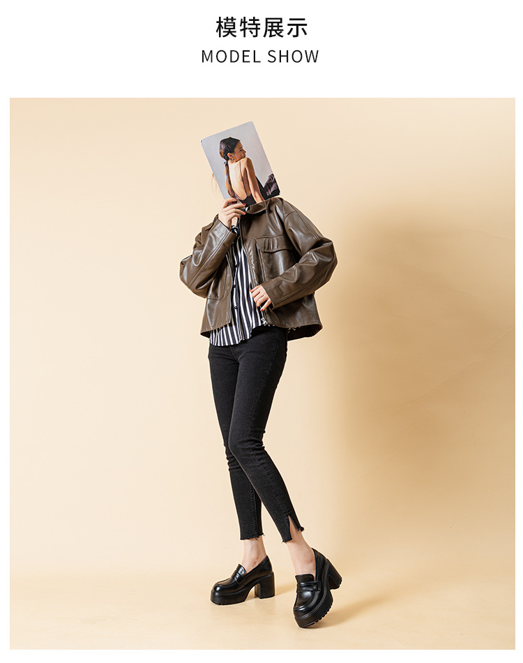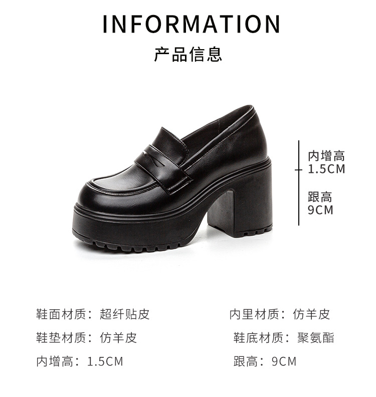 내부 높이 증가 작은 가죽 신발 라운드 머리 두꺼운 바닥 로퍼 여성의 2024 새로운 스타일 슬립 온 블랙 싱글 신발 두꺼운 가열 영국 스타일스토어 가기