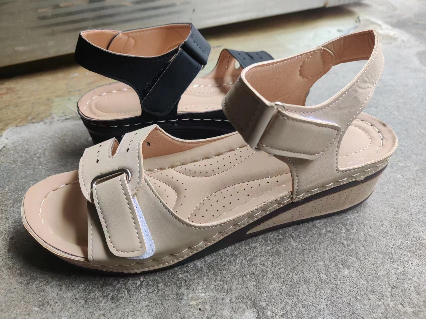 여성을위한 새로운 국경 로마 샌들 통기성 자동차 봉합 벨크로 대형 유럽과 미국의 복고풍 솔리드 컬러 여성을위한 두꺼운 밑창 샌들