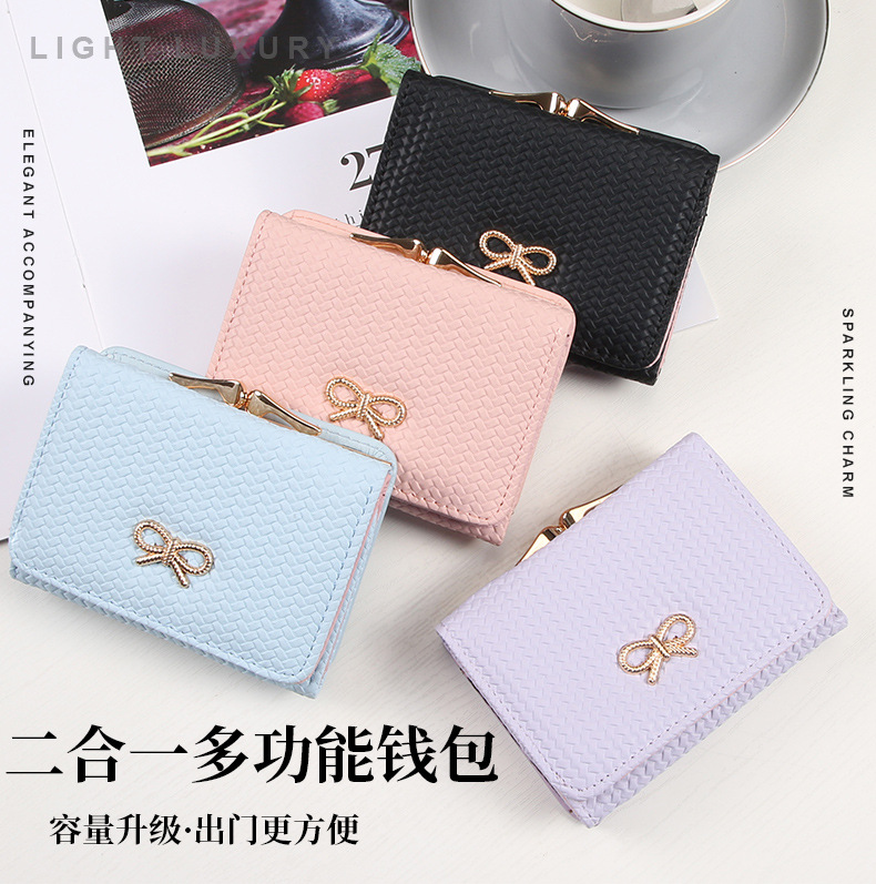 새로운 더블 소재 짧은 여성 지갑 카드 홀더 다기능 지갑 여성 카드 홀더 학생 동전 지갑 미니 활