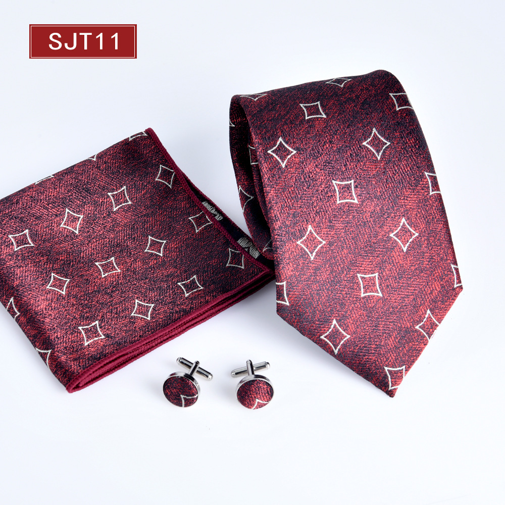 남자 넥타이 스퀘어 커프단추 3 종 세트 남자 정식 원피스 전문 비즈니스 자카드 8cm 재고 뉴 재고