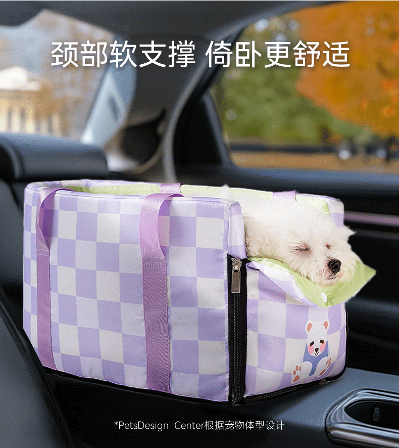 보라색 간단한 유행 확인 중앙 제어 자동차 둥지 작은 개와 고양이 나들이 차 둥지 착용 방지 애완 동물 사육장