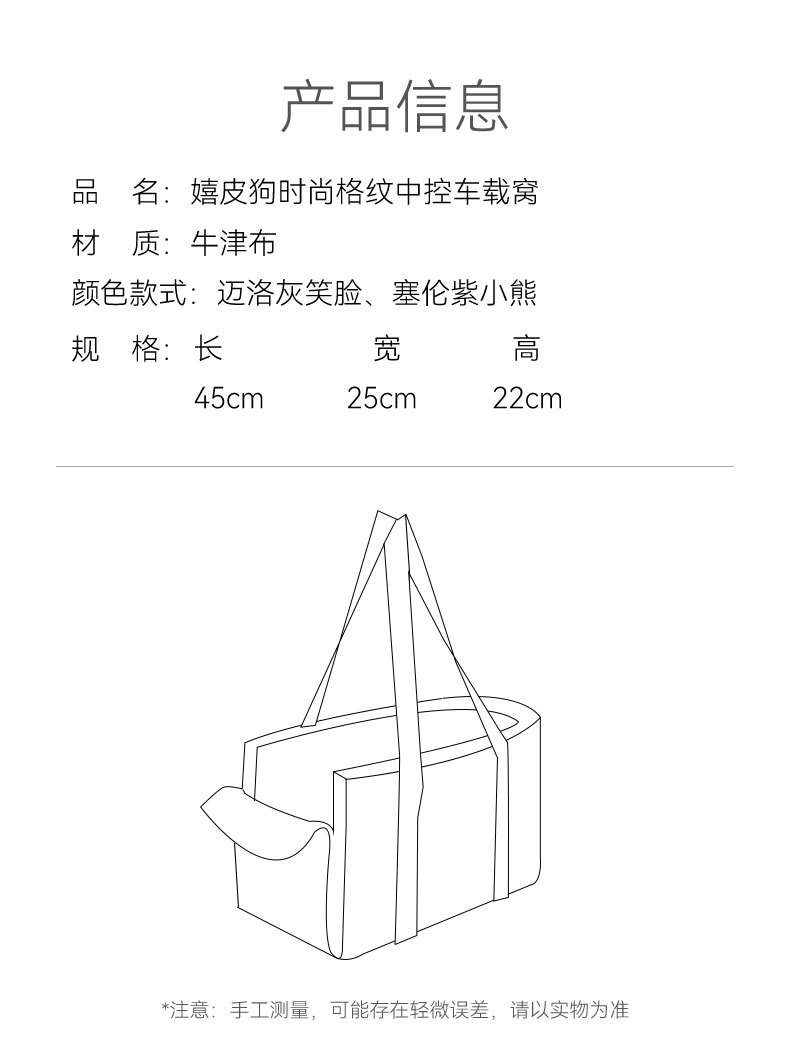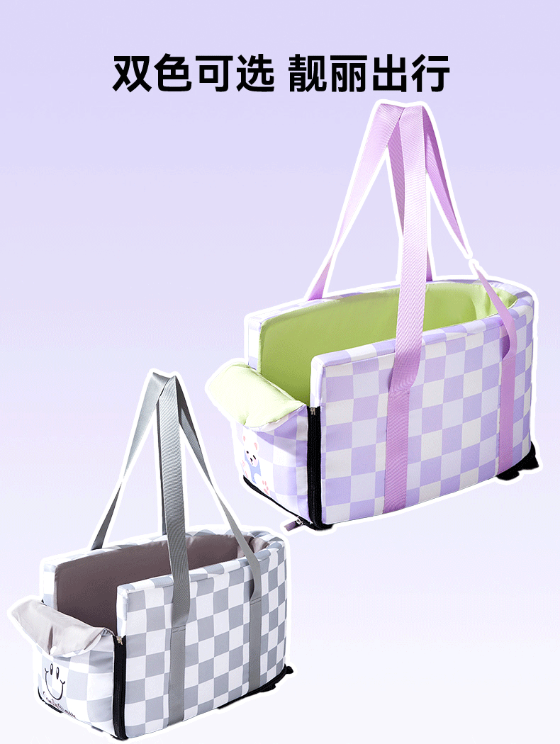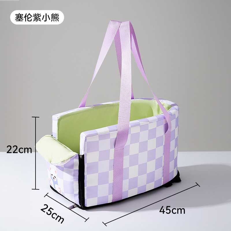 보라색 간단한 유행 확인 중앙 제어 자동차 둥지 작은 개와 고양이 나들이 차 둥지 착용 방지 애완 동물 사육장스토어 가기