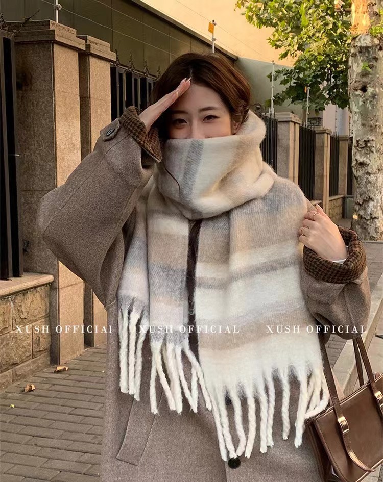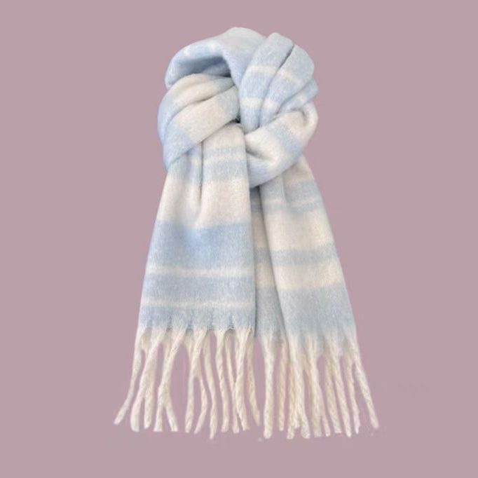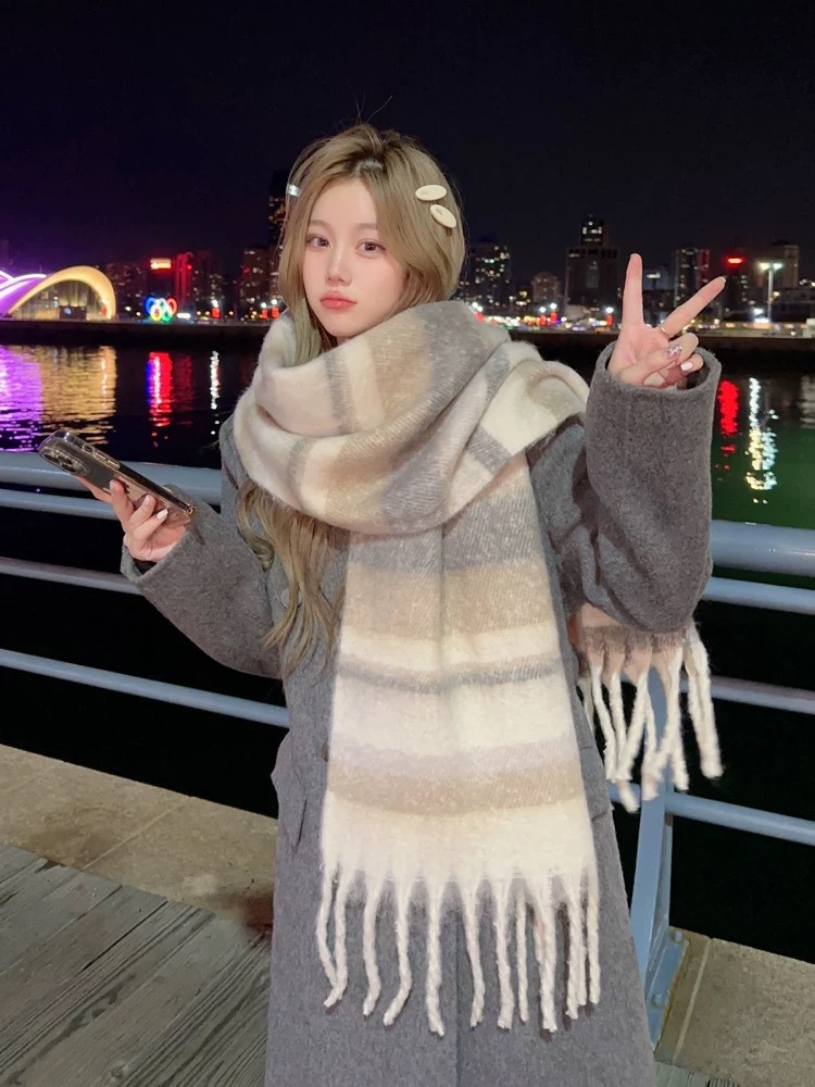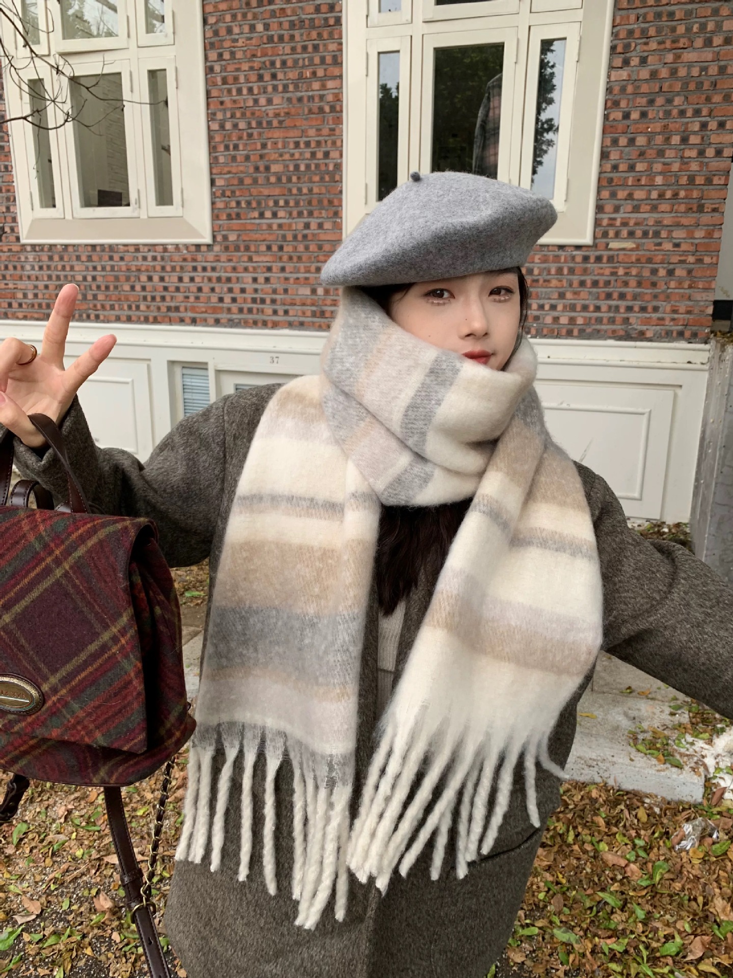 통루 공장 줄무늬 스카프 여성 겨울 새 분위기 메일러드 프리미엄 한국 다목적 따뜻한 스카프