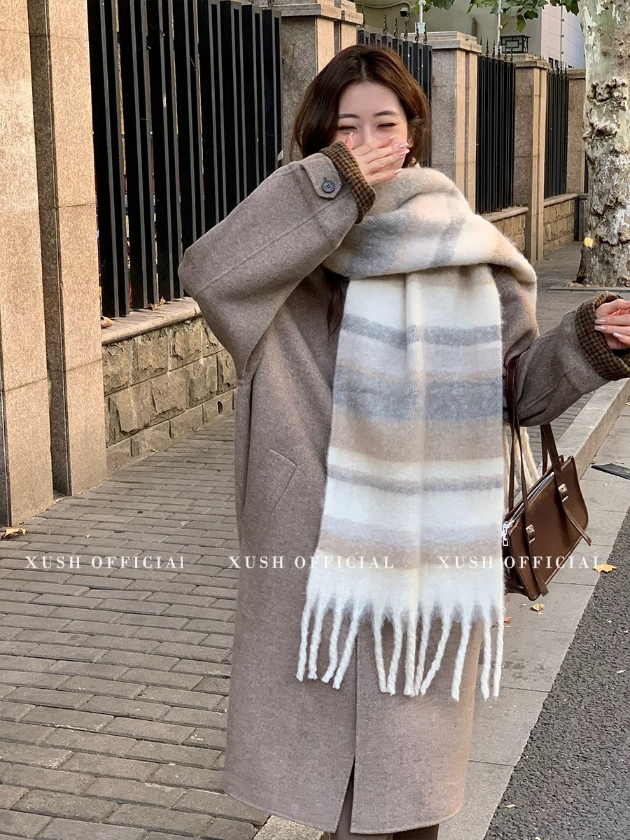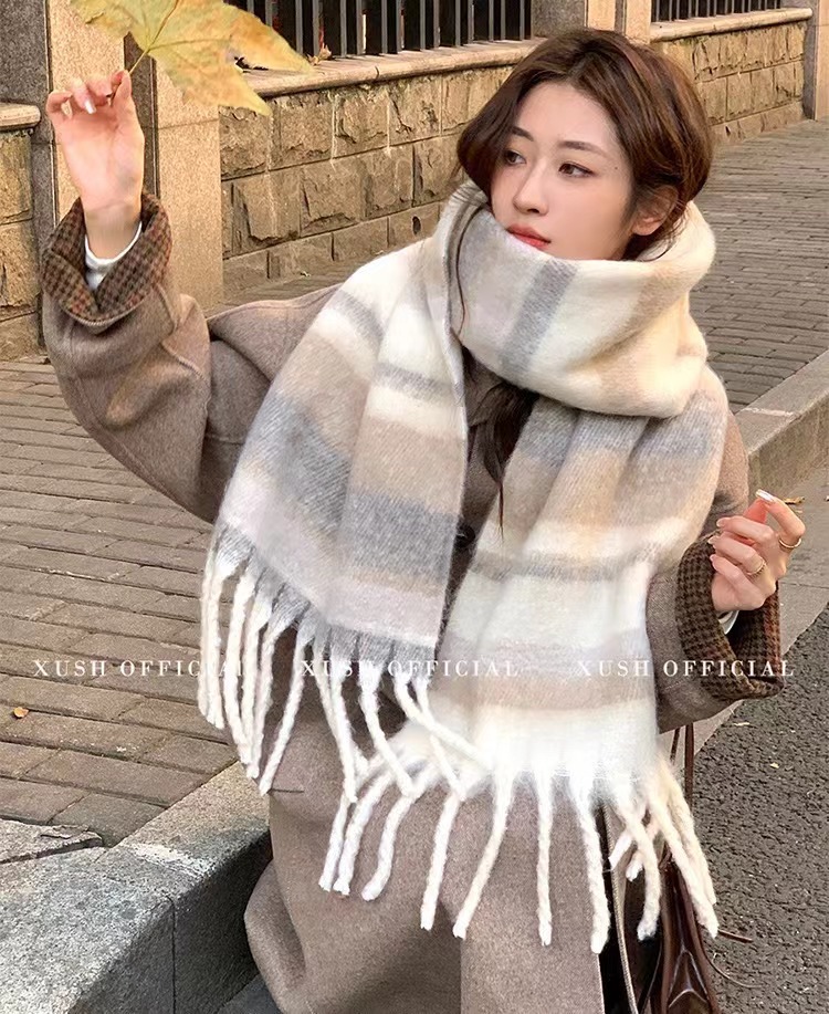통루 공장 줄무늬 스카프 여성 겨울 새 분위기 메일러드 프리미엄 한국 다목적 따뜻한 스카프스토어 가기
