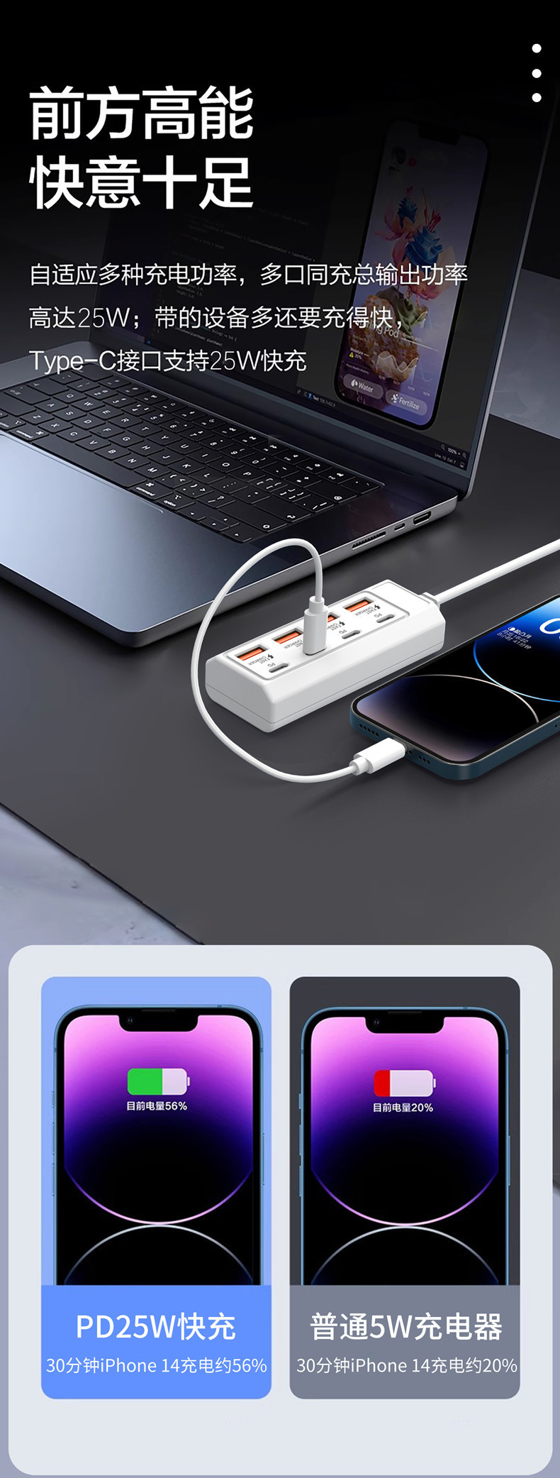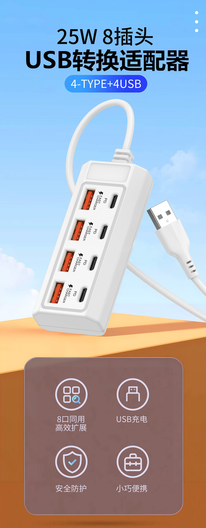 멀티 소켓 USB 확장 케이블 확장 도크 PD 빠른 충전 스플리터 확장기 유형-c 턴 8 더