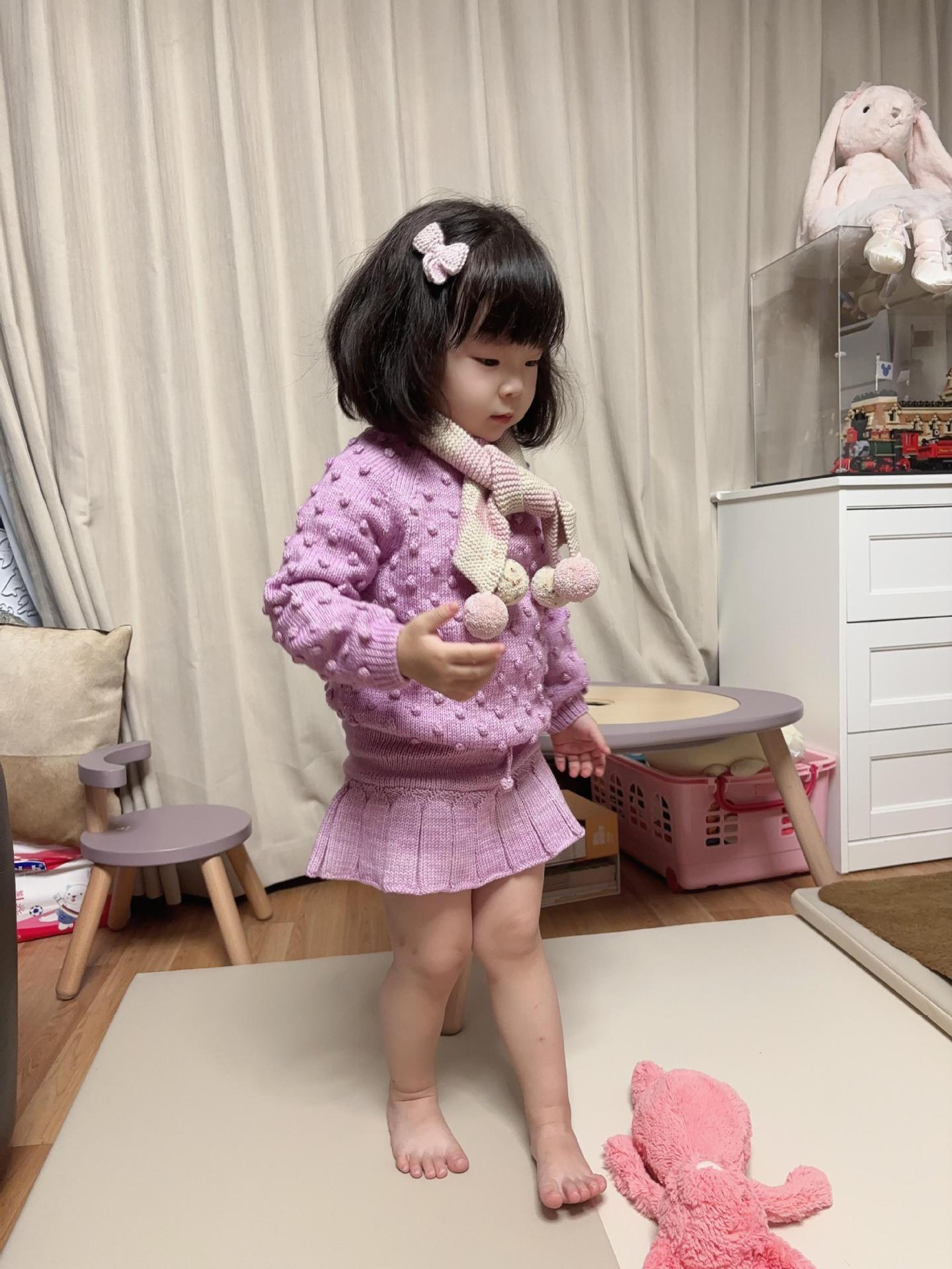 Ins2024 가을, 겨울 mp 시리즈 같은 스타일 북유럽 스타일 소녀 나비 넥타이 니트 카디건 팝콘 스웨터 스커트 NY스토어 가기