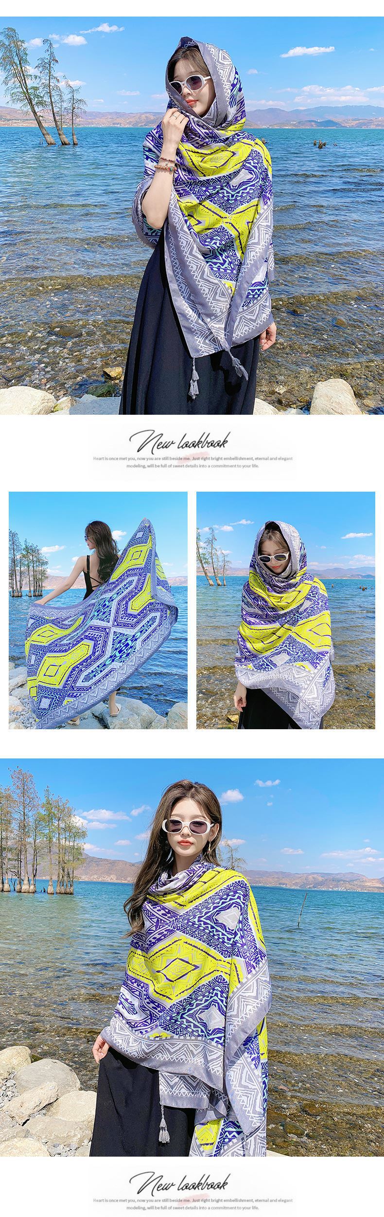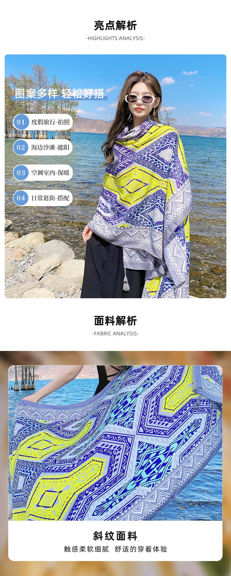 여름 새로운 여행 사진 스카프 여성 민족 스타일 해변 슈퍼 대형 스카프 얇은 외부 스카프 목도리
