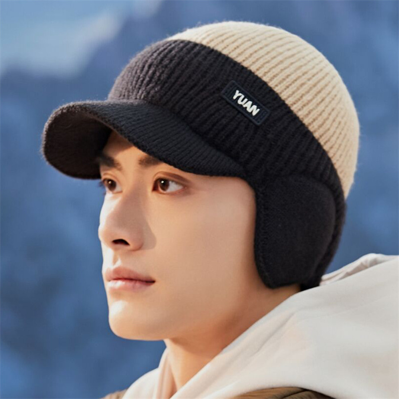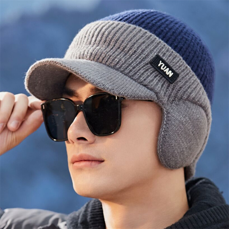 기모 울 모자 남자의 겨울 귀 보호 가방 니트 따뜻한 오리 혀 모자 야외 청소년 사이클링 컬러 매칭 모자
