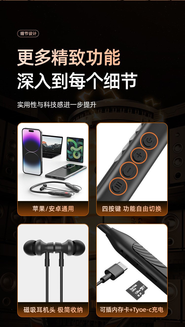 무선 블루투스 헤드셋 BT-8 스포츠 목 유형 삽입 가능 카드 대형 전력 디지털 디스플레이 소음 감소 국경 간 공장 새로운스토어 가기