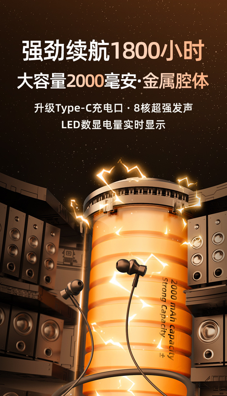무선 블루투스 헤드셋 BT-8 스포츠 목 유형 삽입 가능 카드 대형 전력 디지털 디스플레이 소음 감소 국경 간 공장 새로운